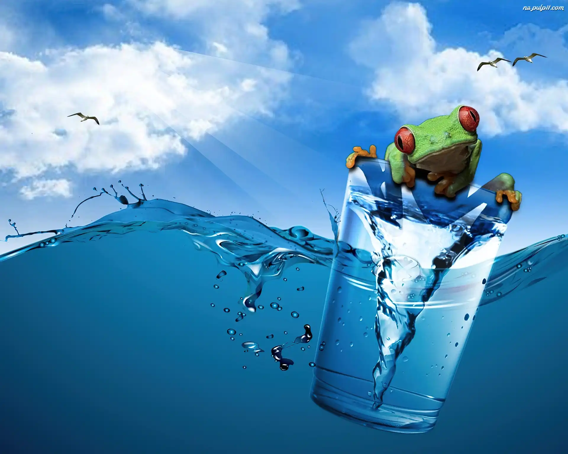Komputerowa, Szklanka, Żaba, Grafika Na Pulpit