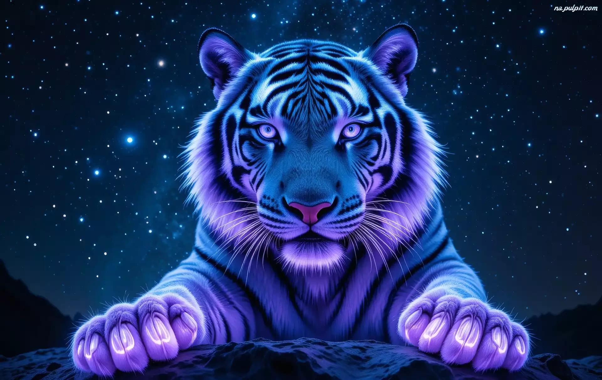 Pazury, Zwierzę, Gwiazdy, Drapieżne, Dzikie, Neon, Paski, Grafika, Sierść, Komputerowa, Tygrys, Luminacja Na Pulpit |