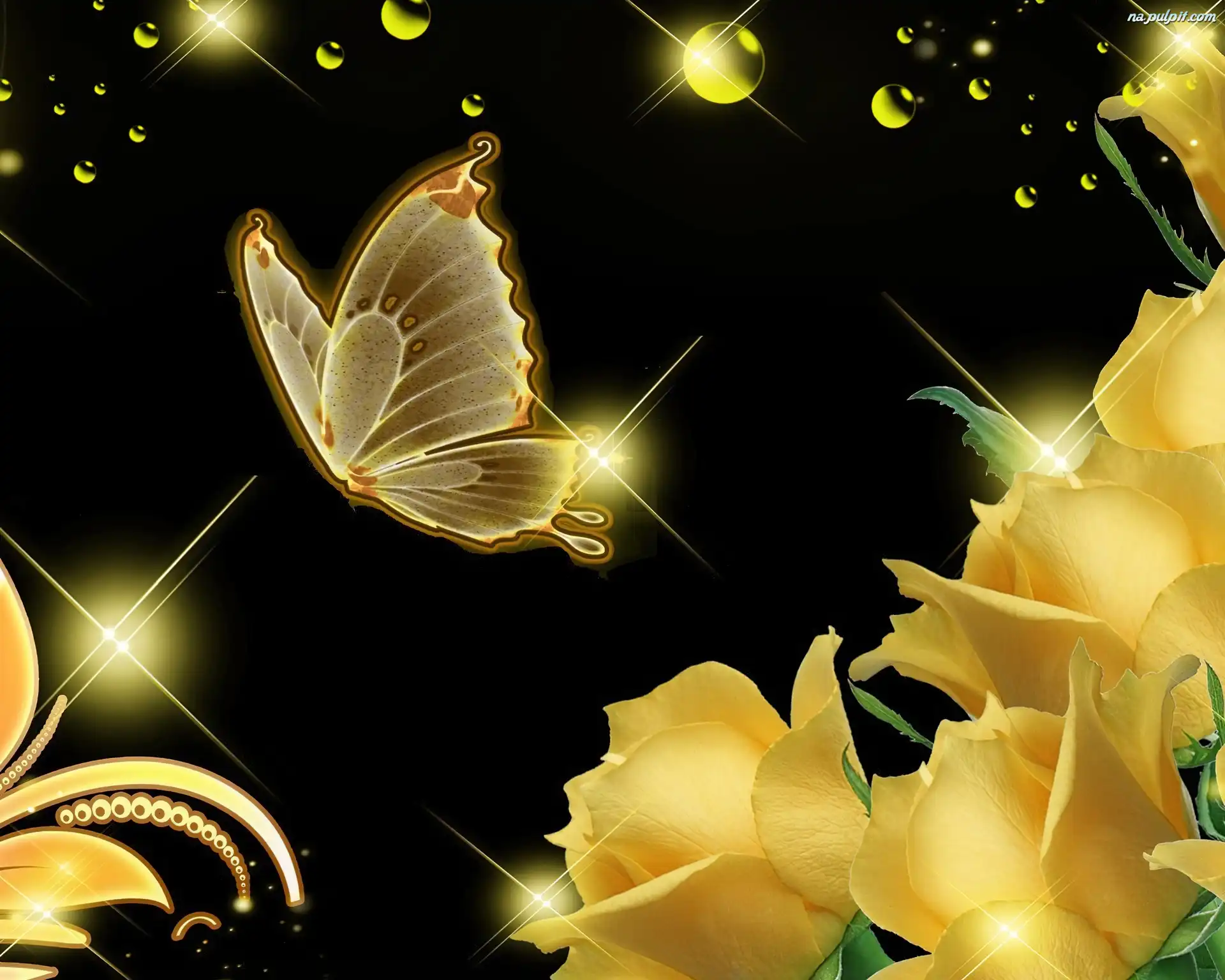 Komputerowa, Motyl, Róże, Grafika Na Pulpit