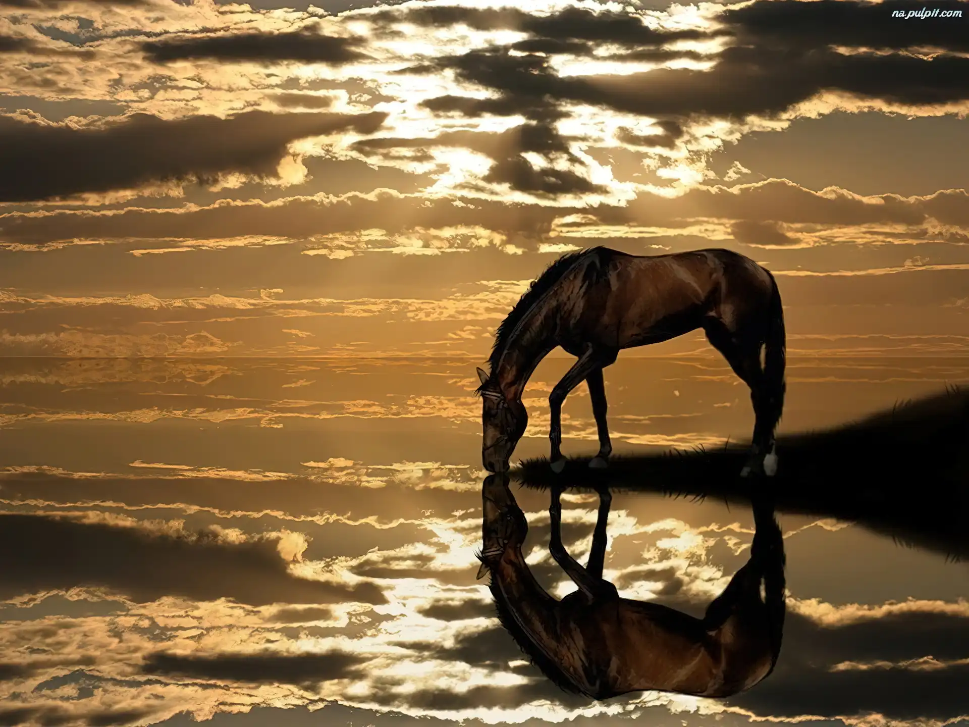 Chmury, Koń, Odbicie Na Pulpit