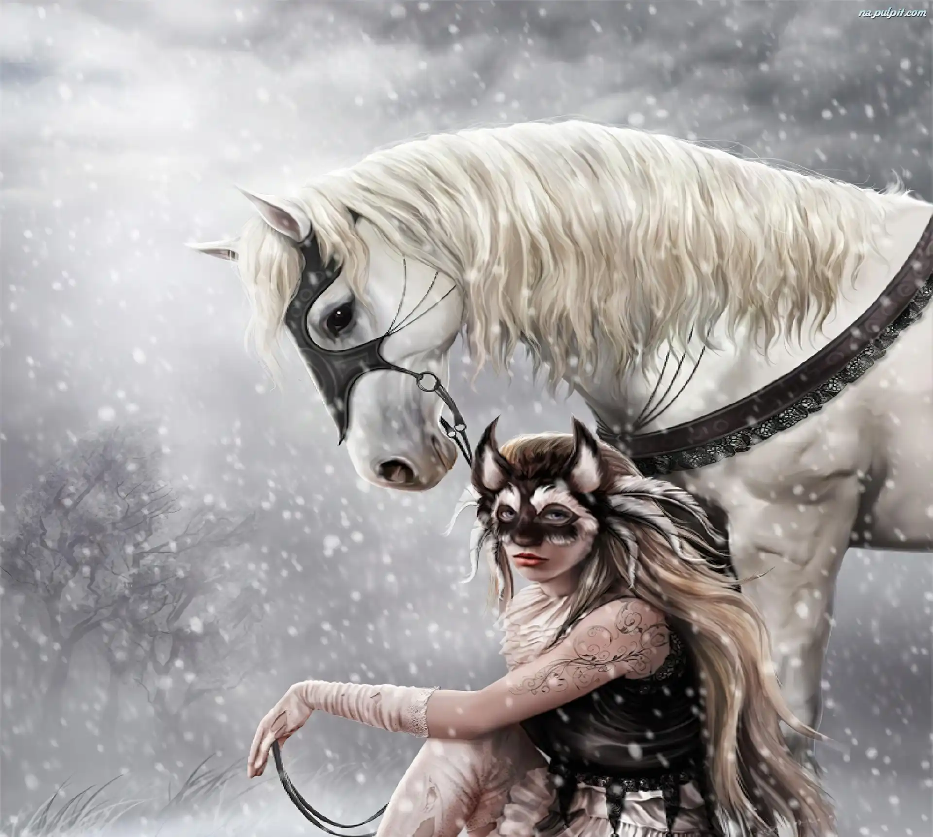 Śnieg, Dziewczyna, Koń, Maska Na Pulpit