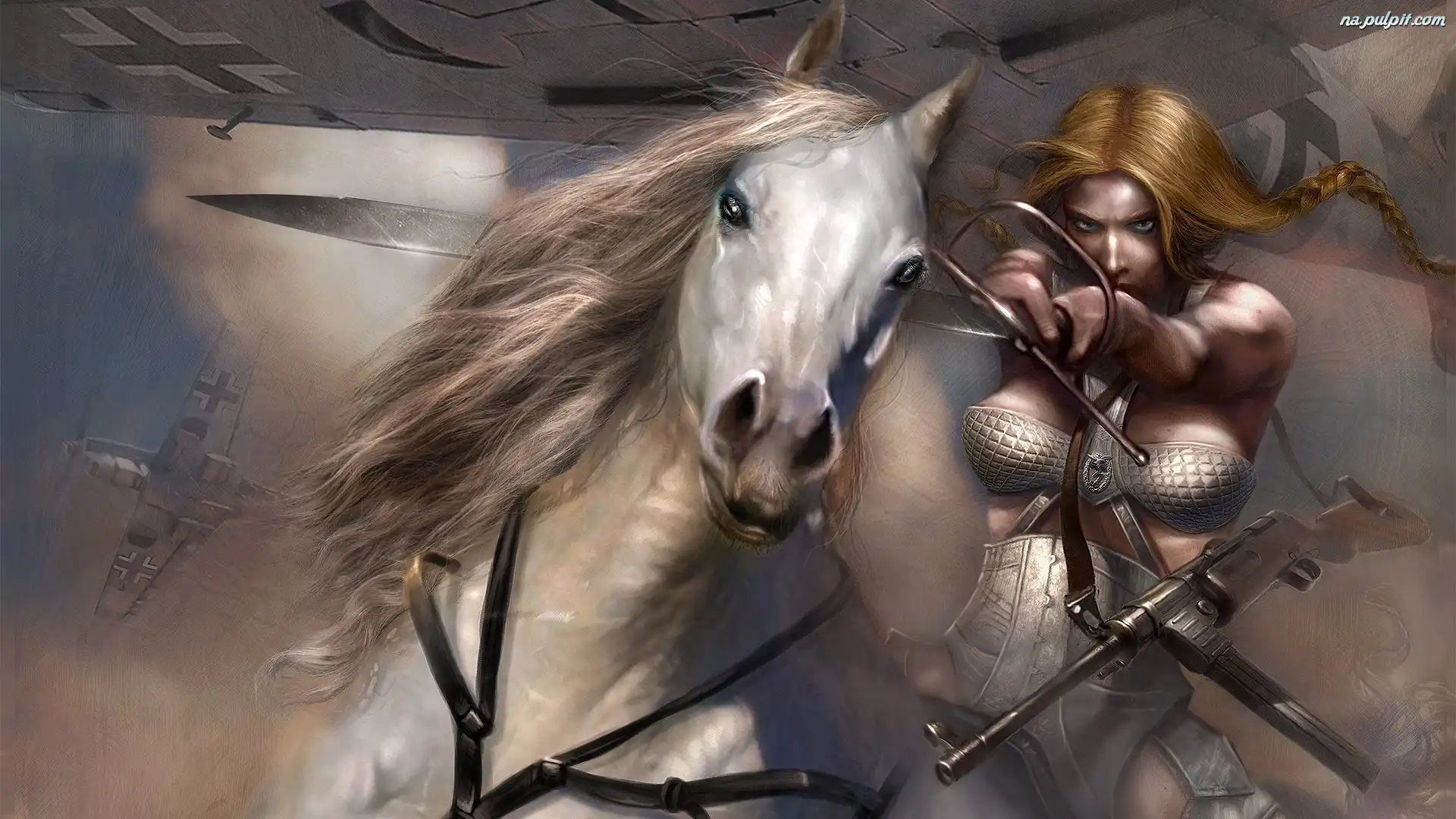Koń, Zbroja, Dziewczyna, Broń