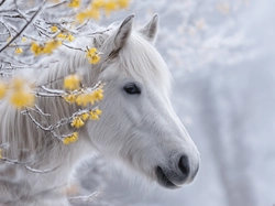 Biały, Koń, Gałązki, Grafika AI