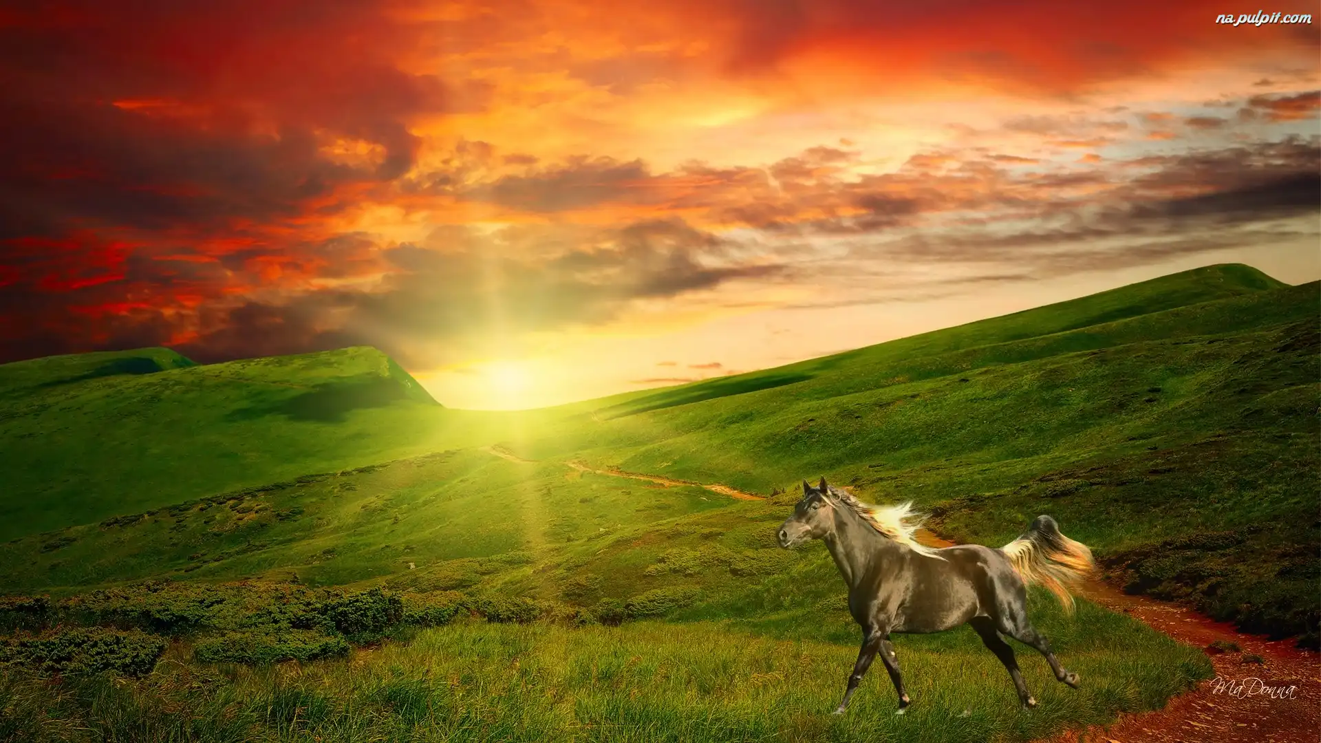 Koń, Słońca, Zachód, Polana Na Pulpit