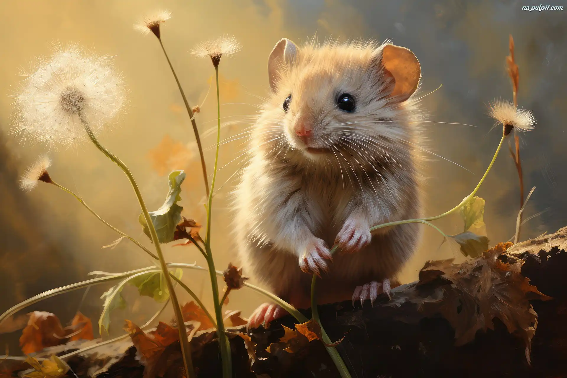 Myszka, Dmuchawce, Liście, Konar Na Pulpit