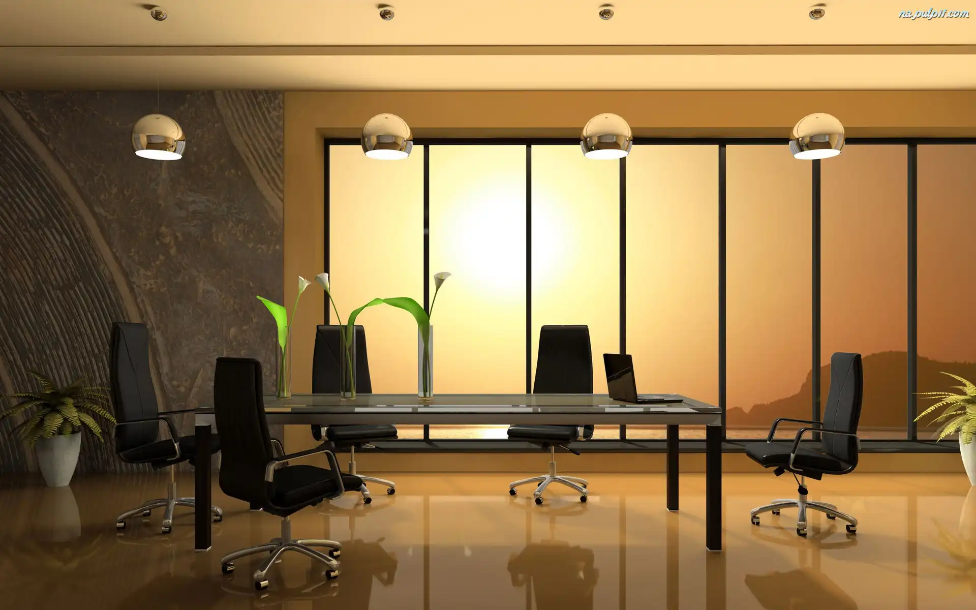 Konferencyjna, Lampy, Okno, Stolik, Sala, Krzesła