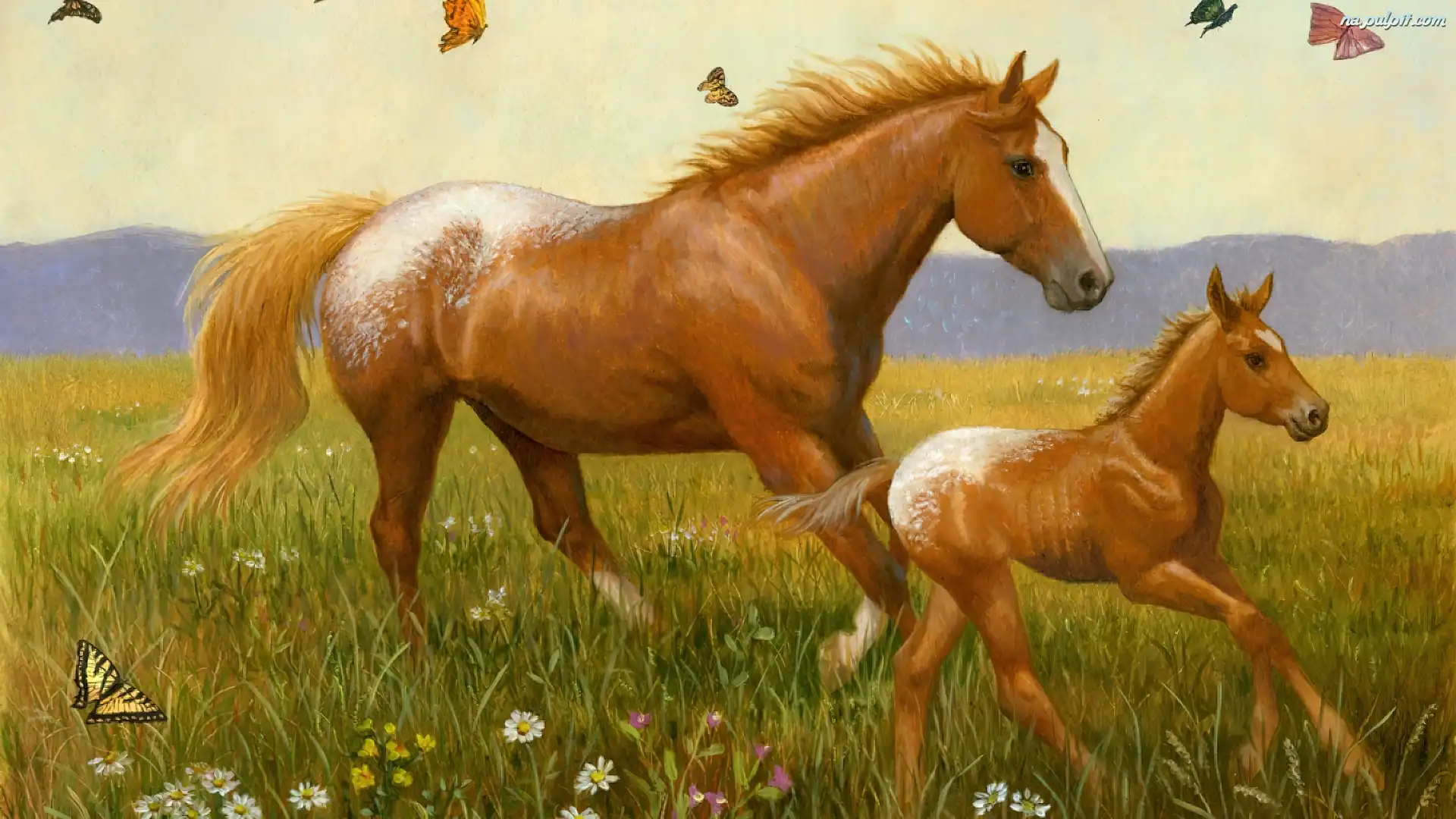 Łąka, Konie, Rodzina Na Pulpit