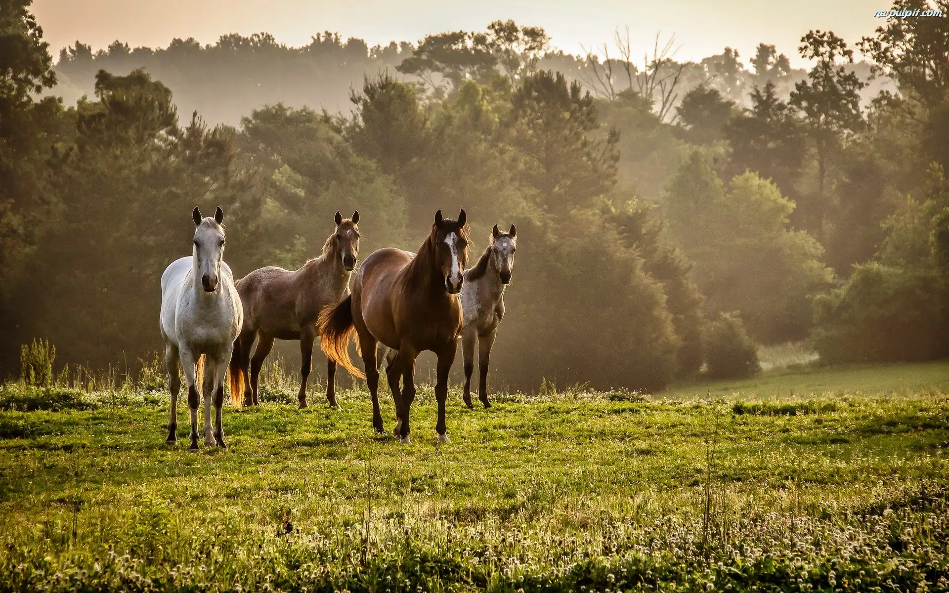 Las, Konie, Łąka Na Pulpit