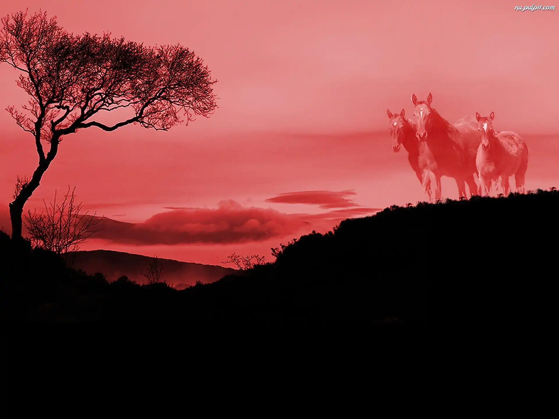 pejzarz, Konie, drzewo Na Pulpit