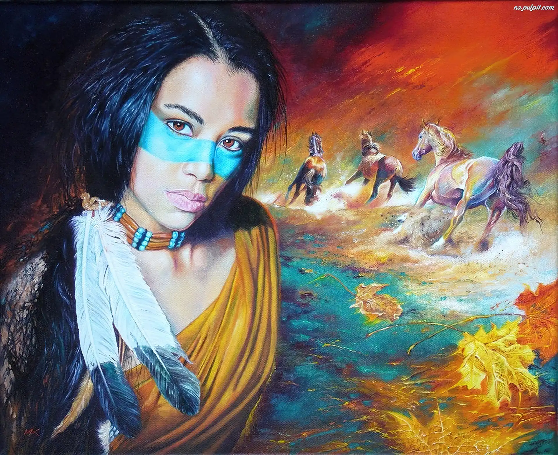 Konie, Włodzimierz Kukliński, Obrazów, Reprodukcje, Indianka Na Pulpit
