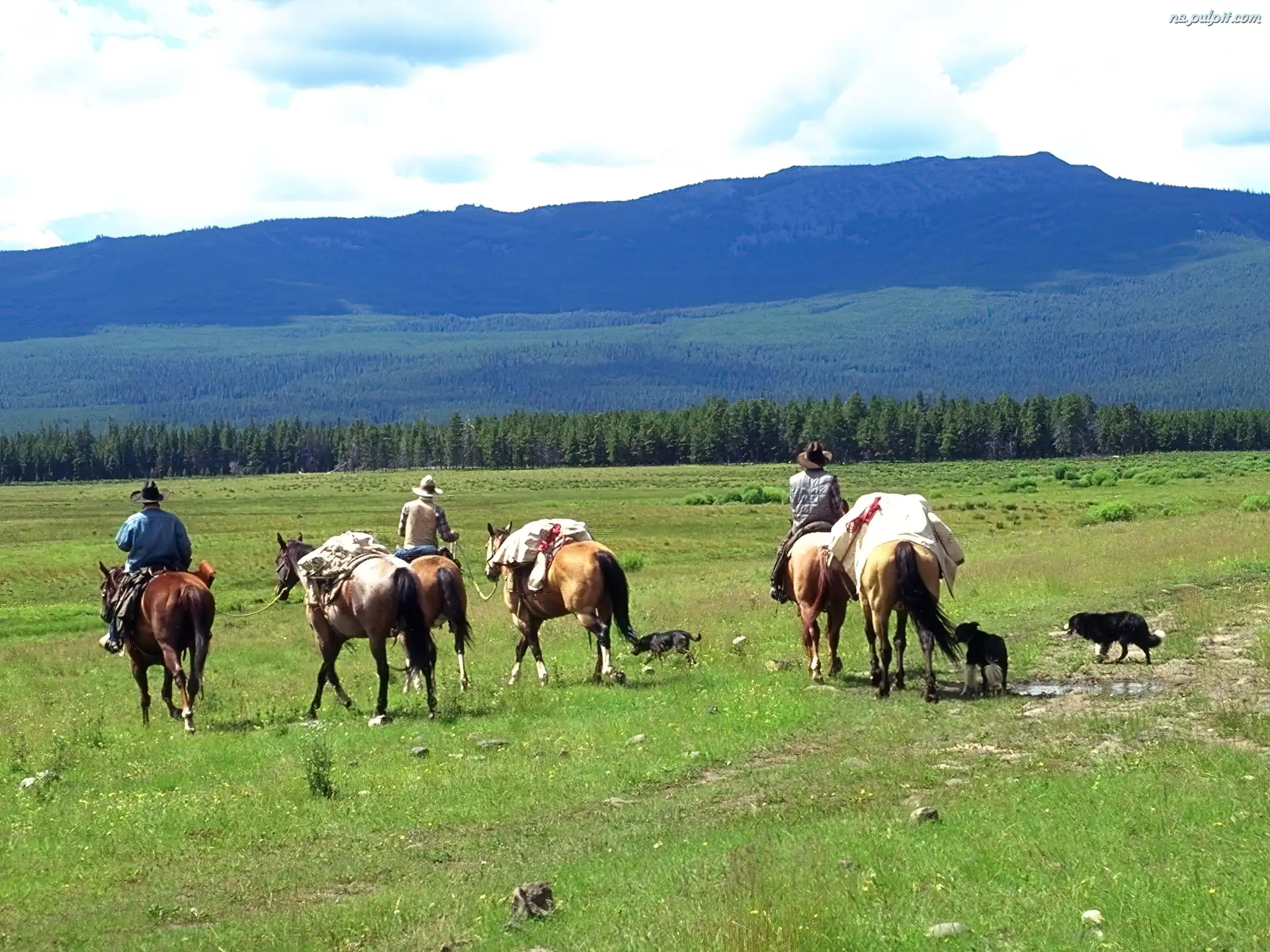 Łąka, Wycieczka, Jeźdźcy, Konie, Góry Na Pulpit