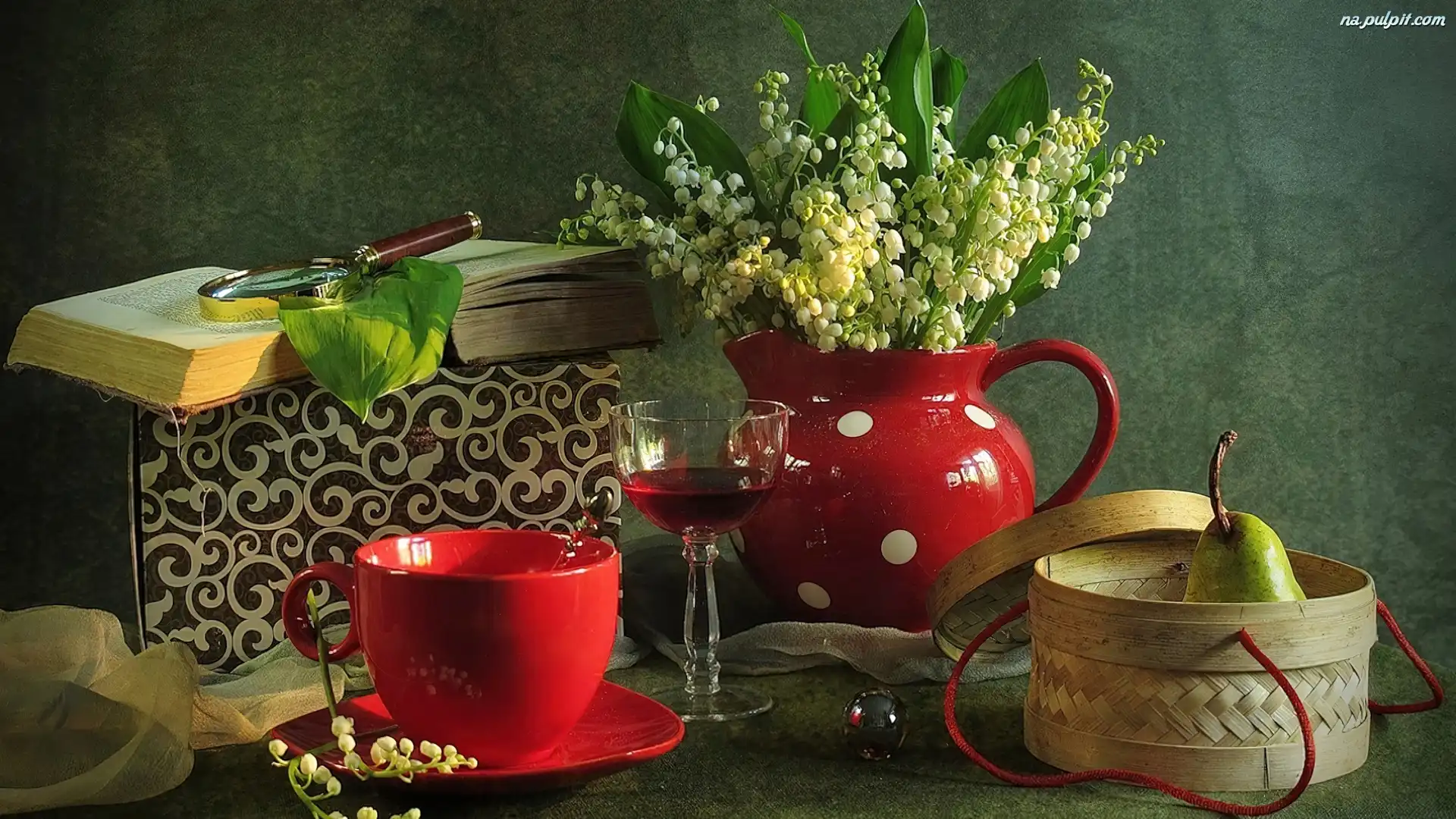 Konwalie, Porcelana, Czerwona, Książka, Koszyk
