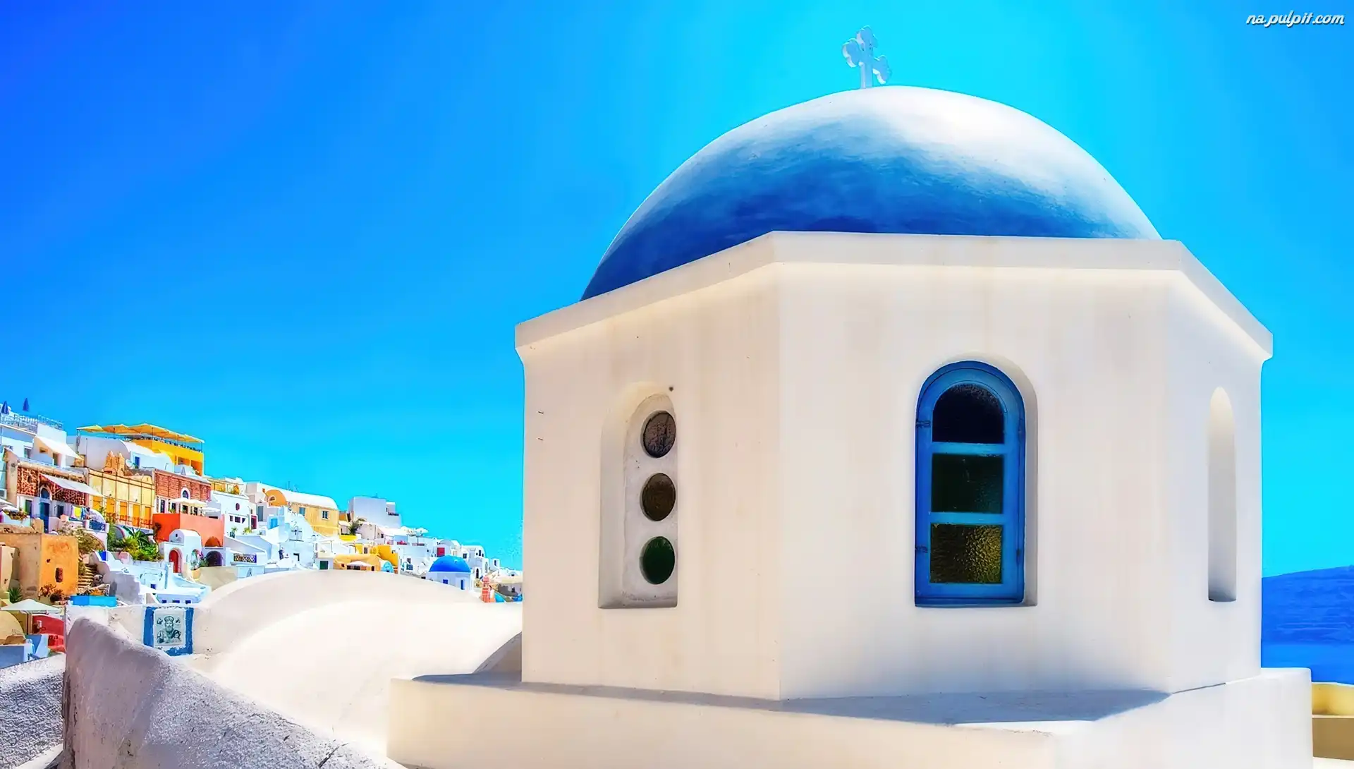 Kopuła, Grecja, Santorini, Cerkiew, Niebieska Na Pulpit