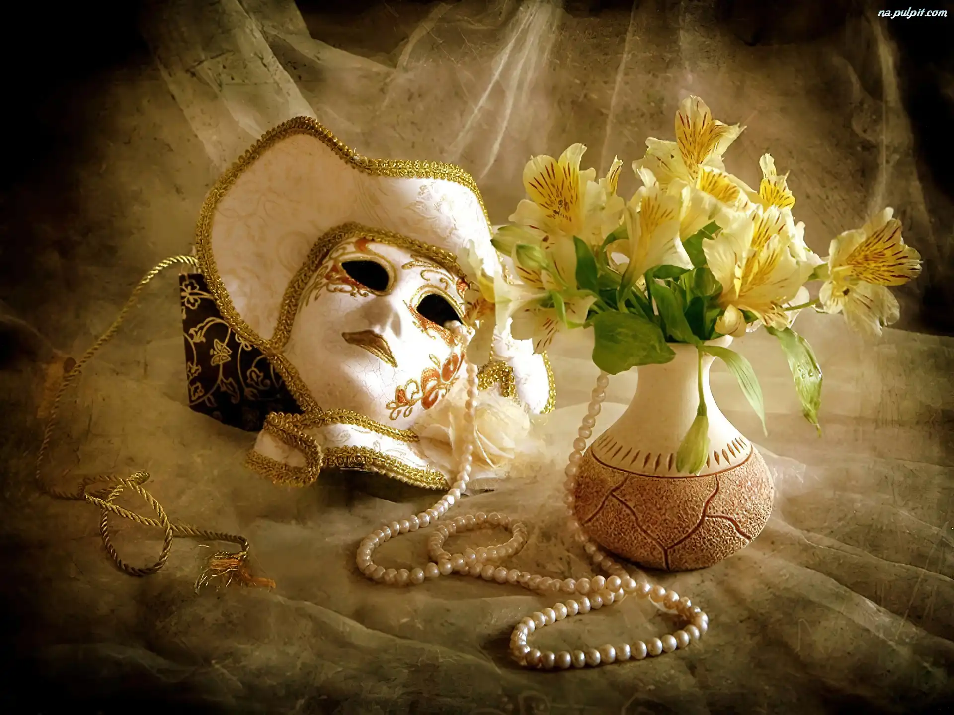 Korale, Maska, Wazon, Kapelusz, Kwiaty