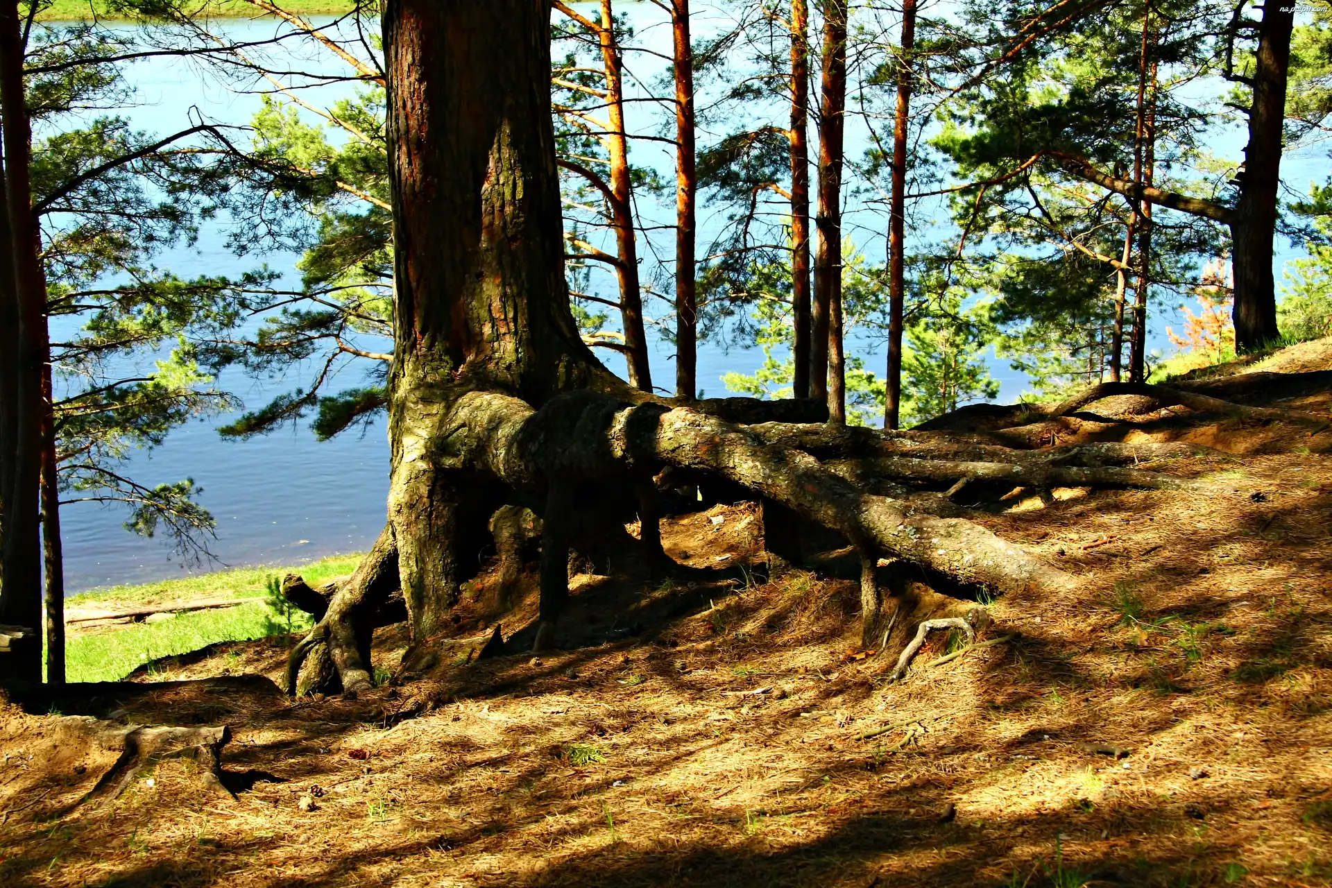 Korzenie, Drzewa, Brzeg, Rzeka, Sosna