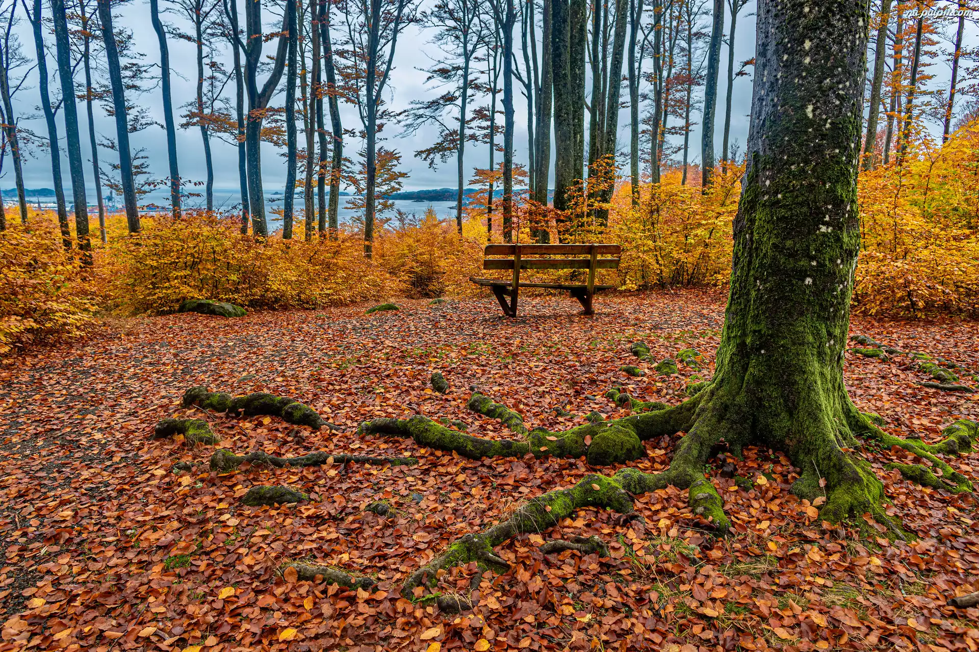 Opadłe, Drzewo, Żółte, Jesień, Ławka, Liście, Park, Korzenie
