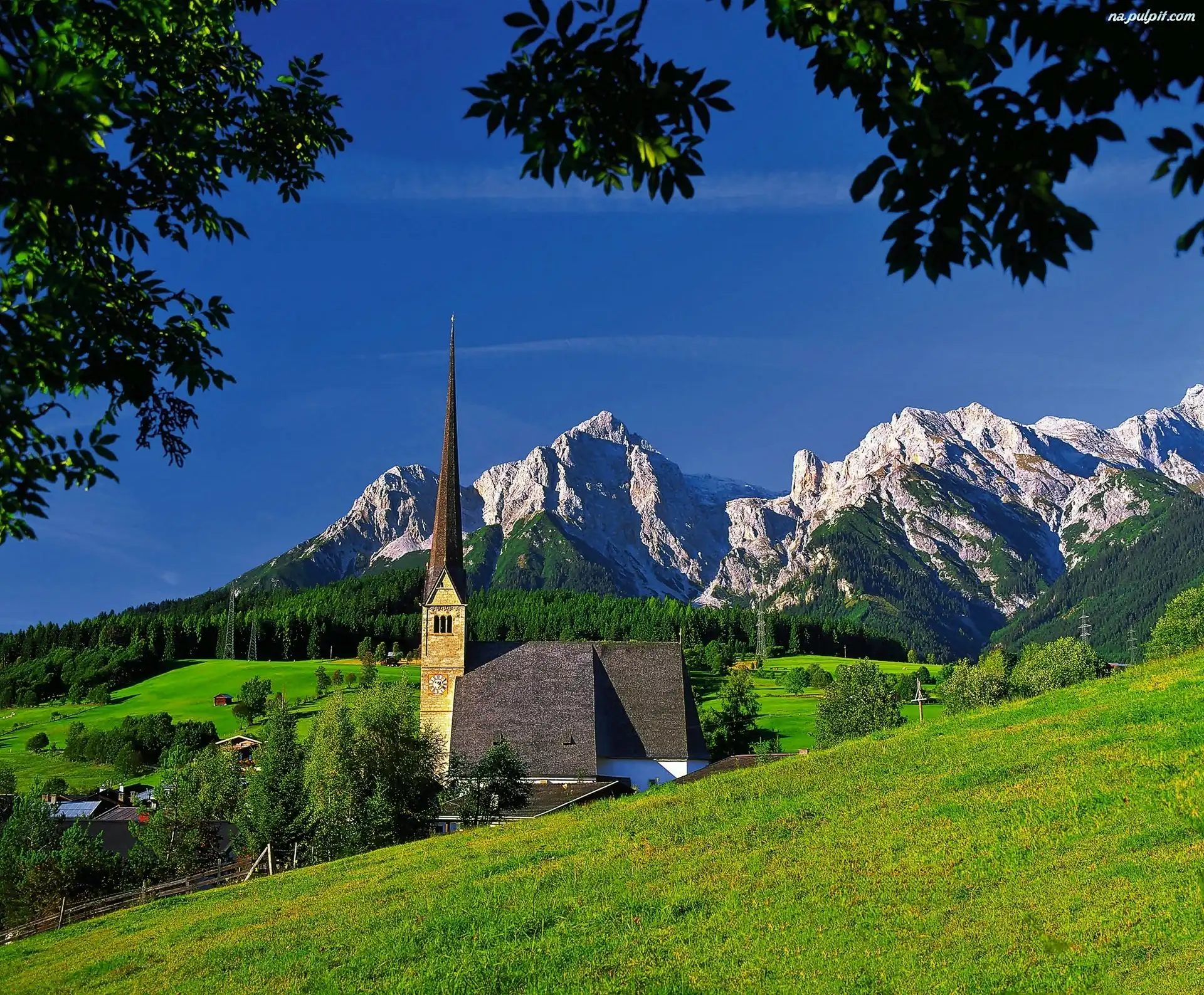 Kościół, Łąki, Lasy, Góry, Domy Na Pulpit