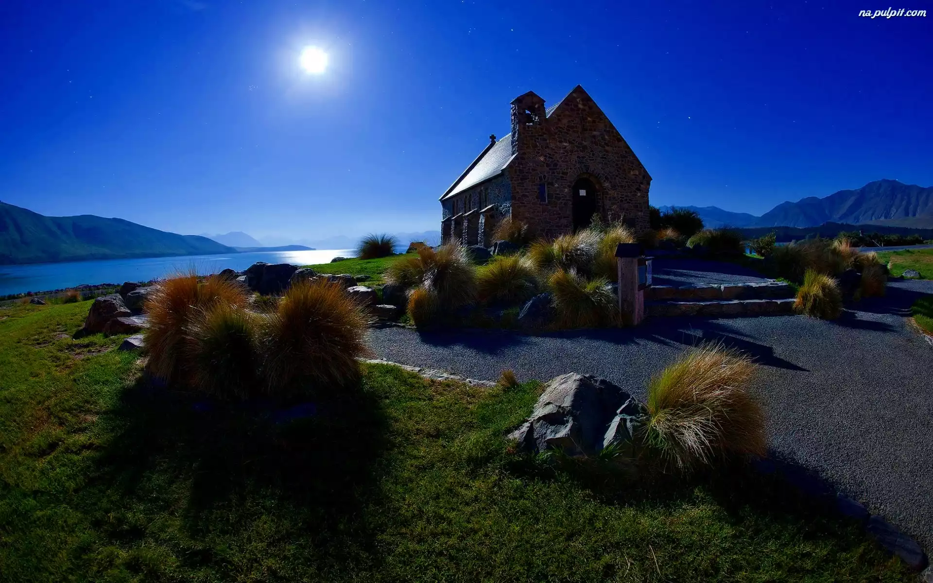 Kościół, Góry, Noc, Szkocja, Jezioro Na Pulpit
