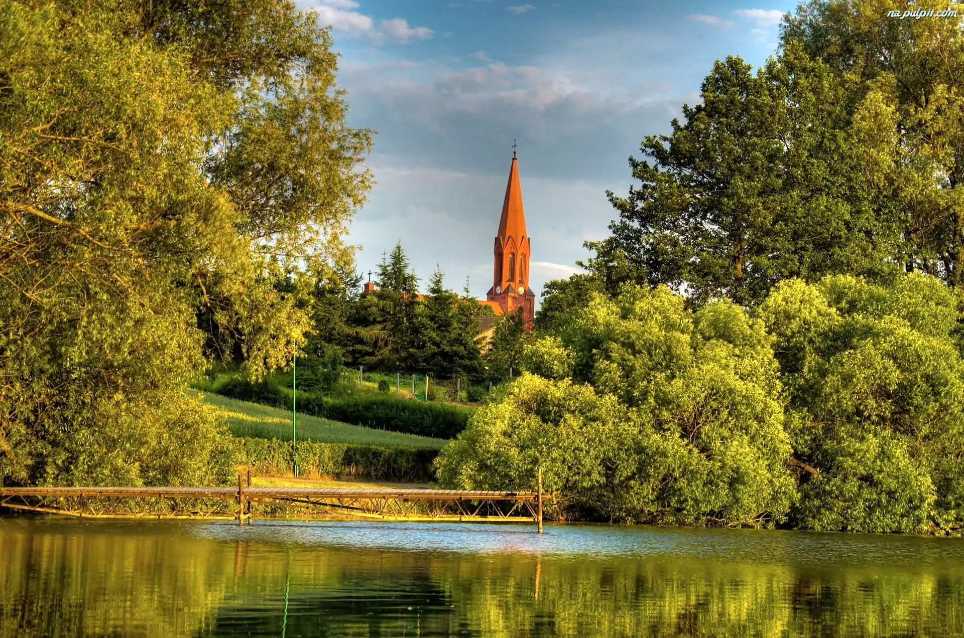 Kościoła, Pomost, Jezioro, Park, Wieża