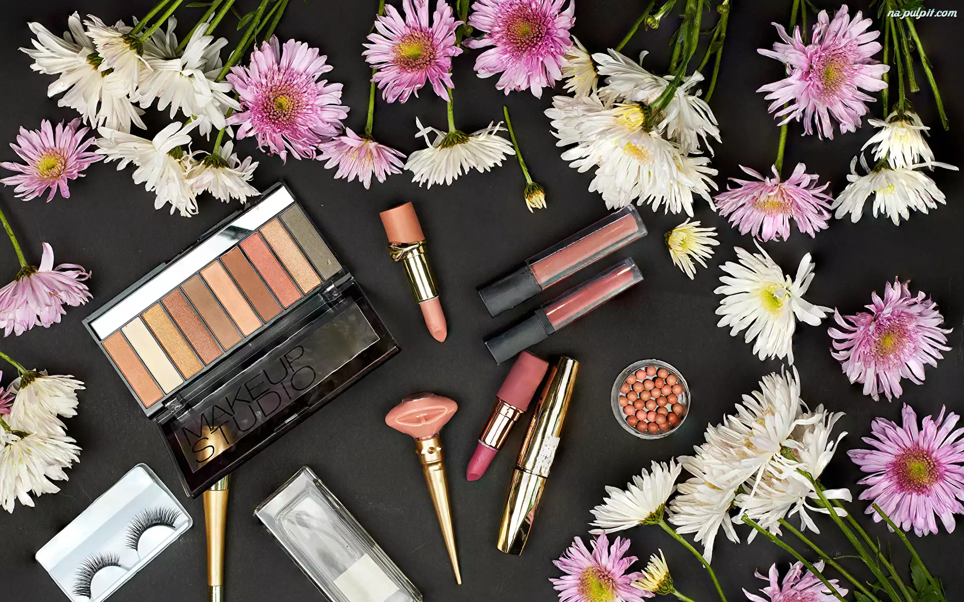 Kosmetyki, Pomadka, Róż, Kwiaty, Kompozycja, Chryzantemy Na Pulpit