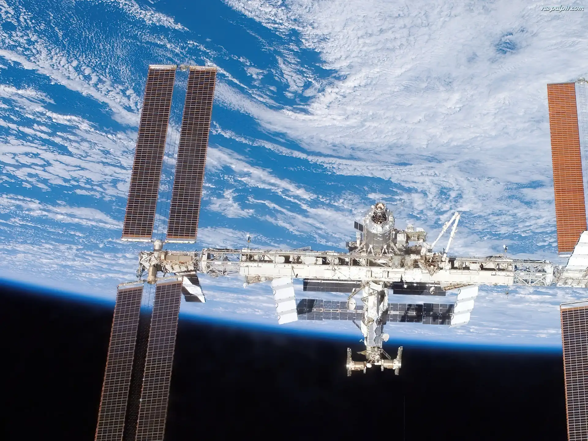 Columbia Kosmiczna, Kosmos, Stacja Columbia, Astronauci Columbia Chmury, Kosmiczna, Stacja, Słońce Columbia Columbia, Stacja, Kosmiczna Columbia