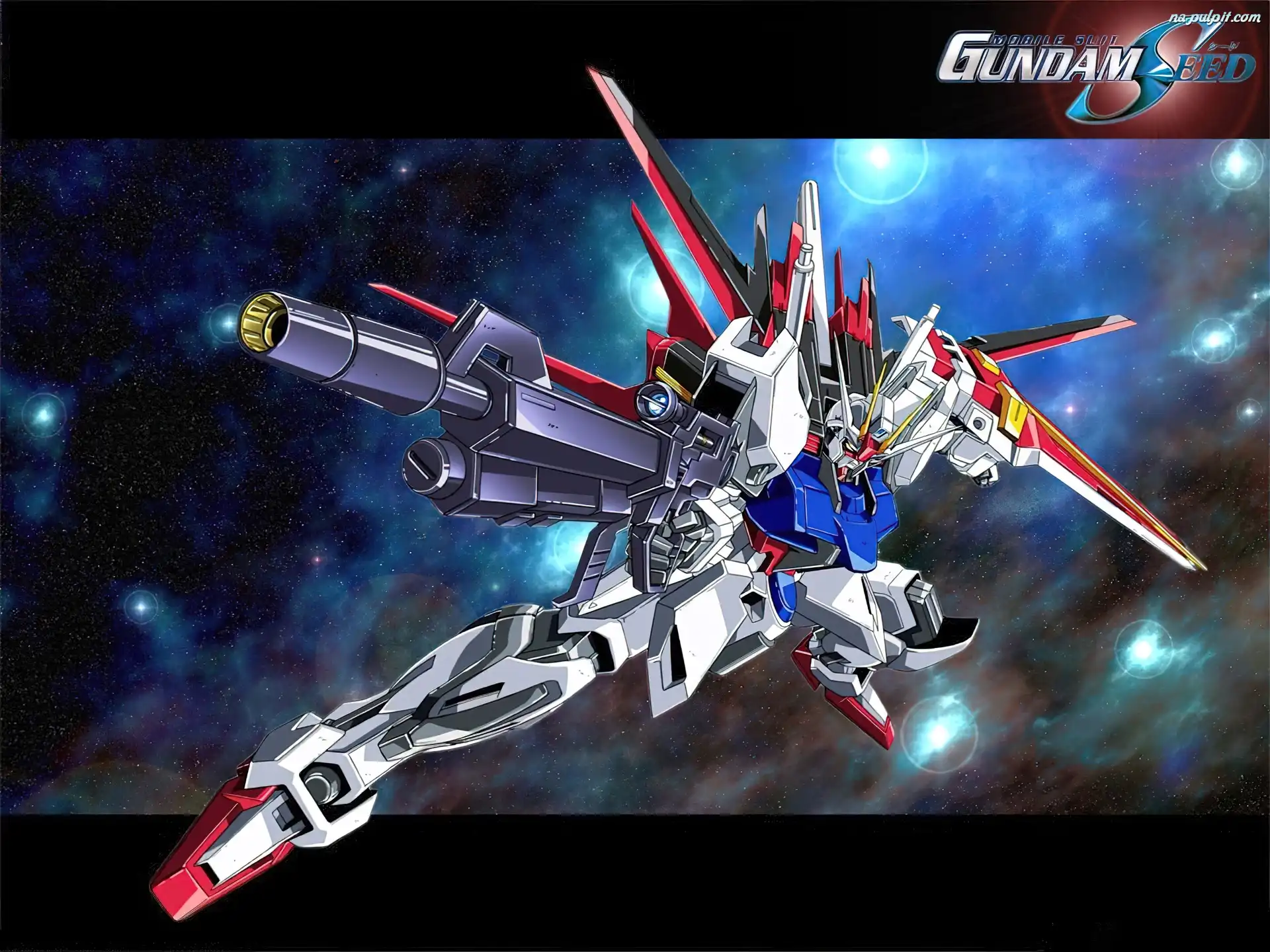 kosmos, logo, napis, Gundam Seed, robot Na Pulpit