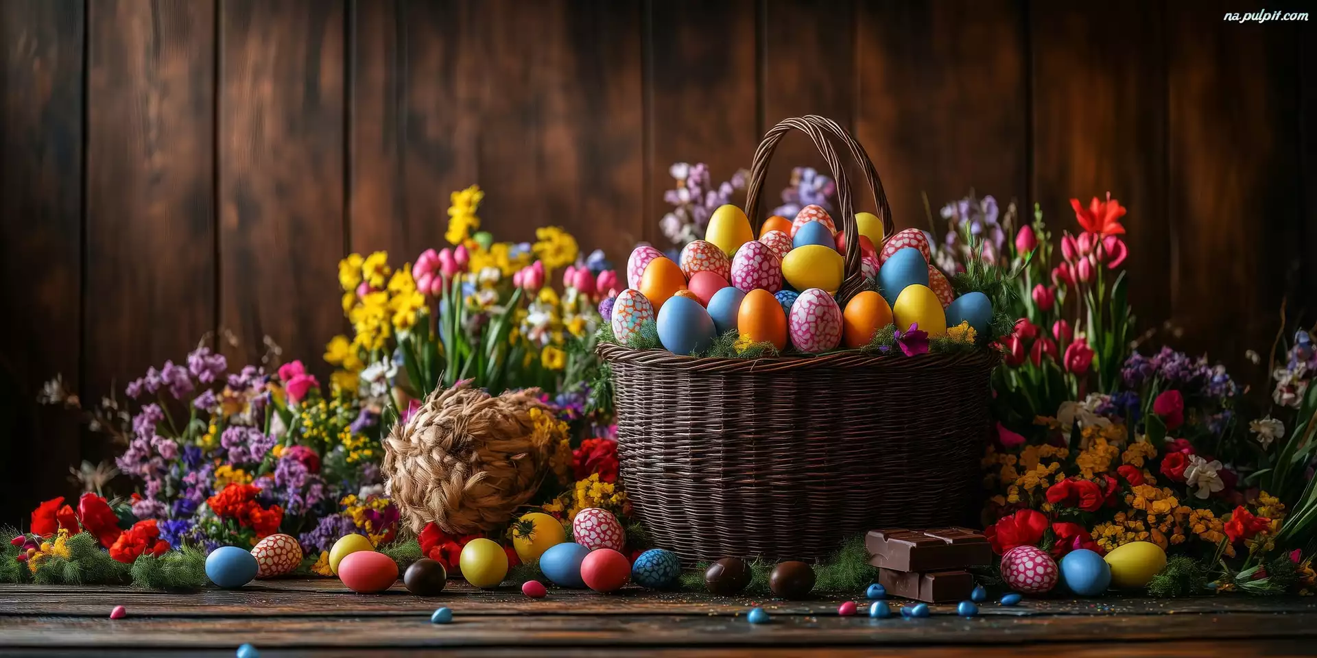 Kwiaty, Wielkanoc, Pisanki, Kosz, Kolorowe, Grafika Na Pulpit