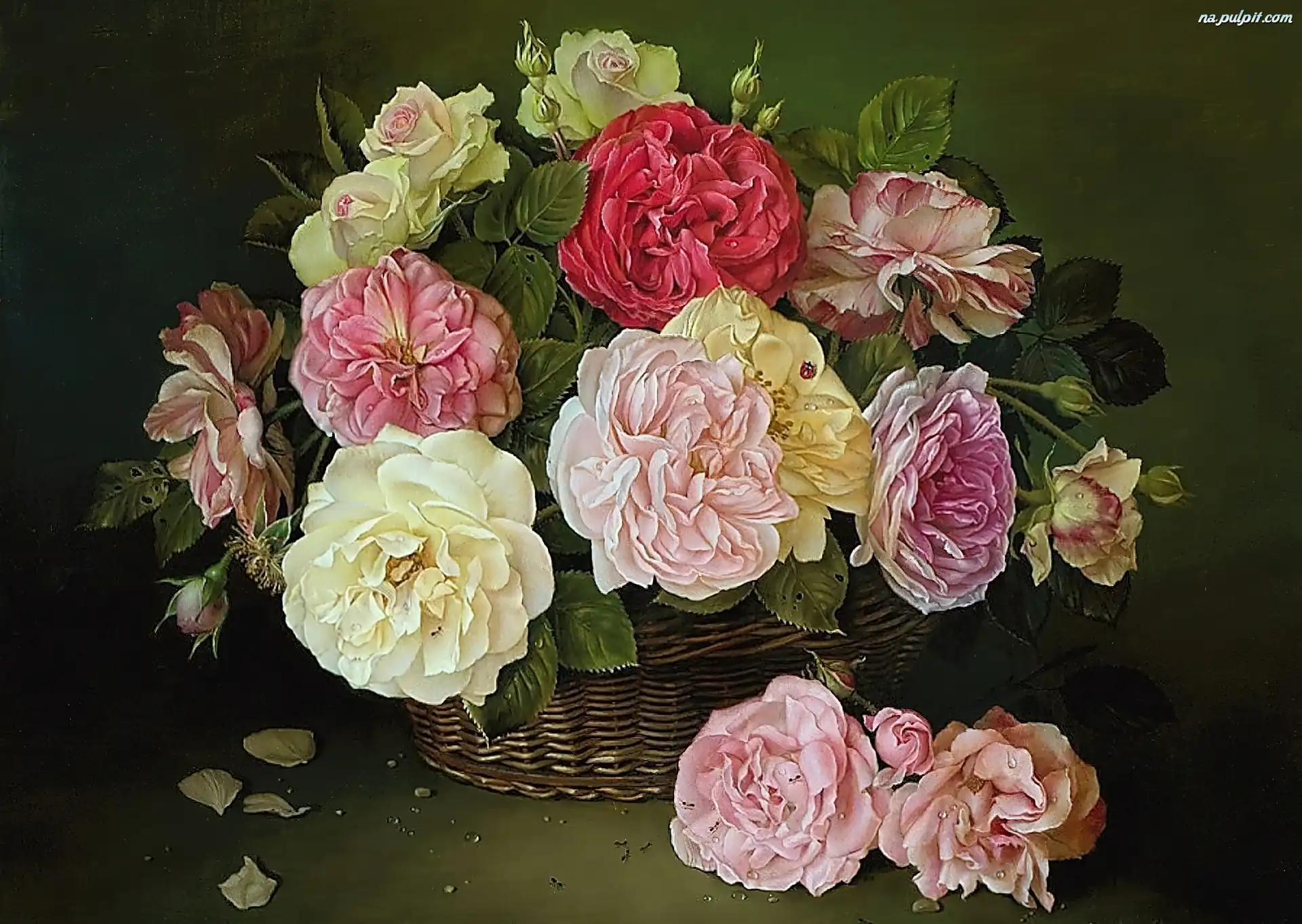 Kosz, Kolorowe, Kwiaty, Róże Na Pulpit