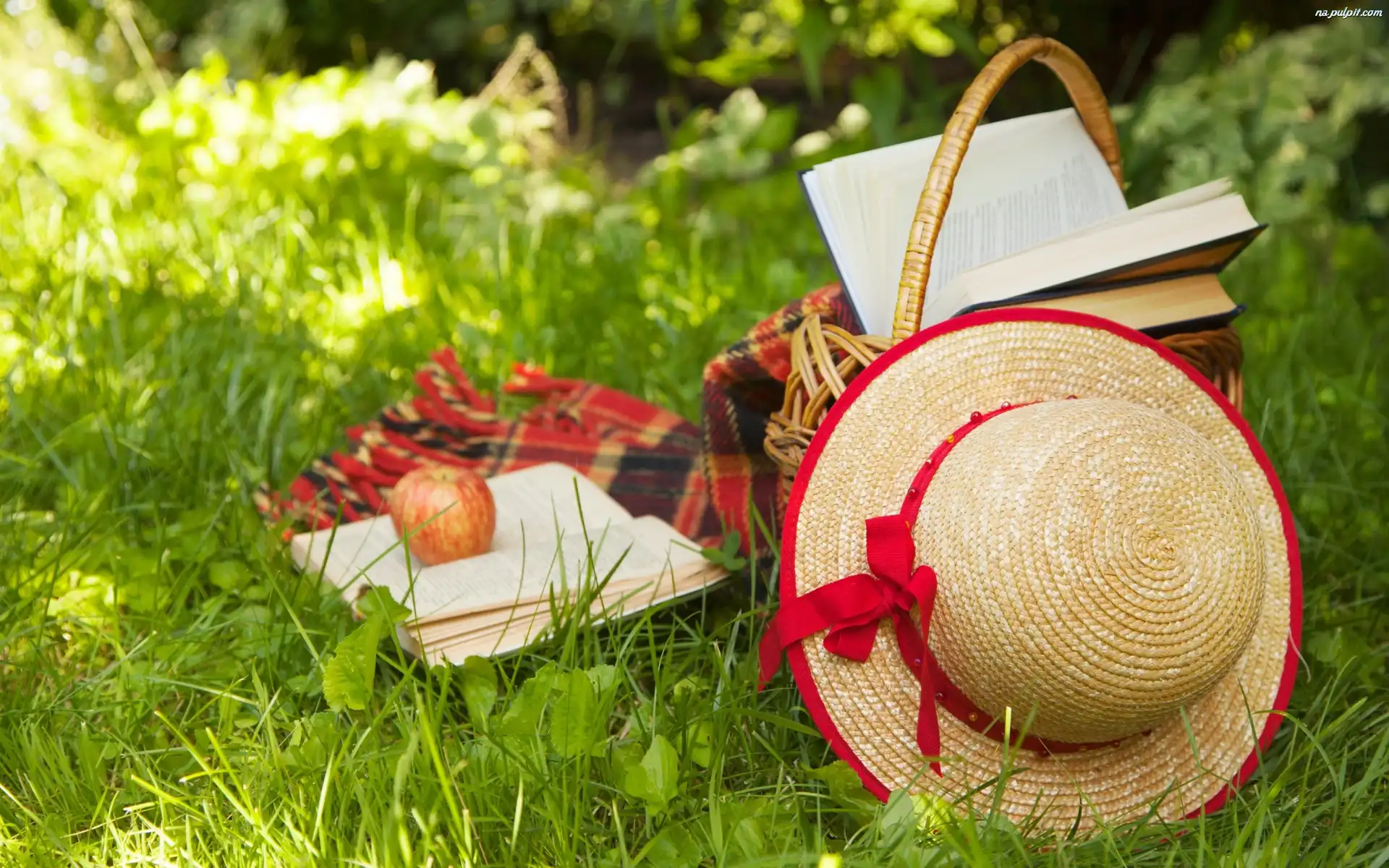 Kosz, Jabłko, Trawa, Kapelusz Na Pulpit