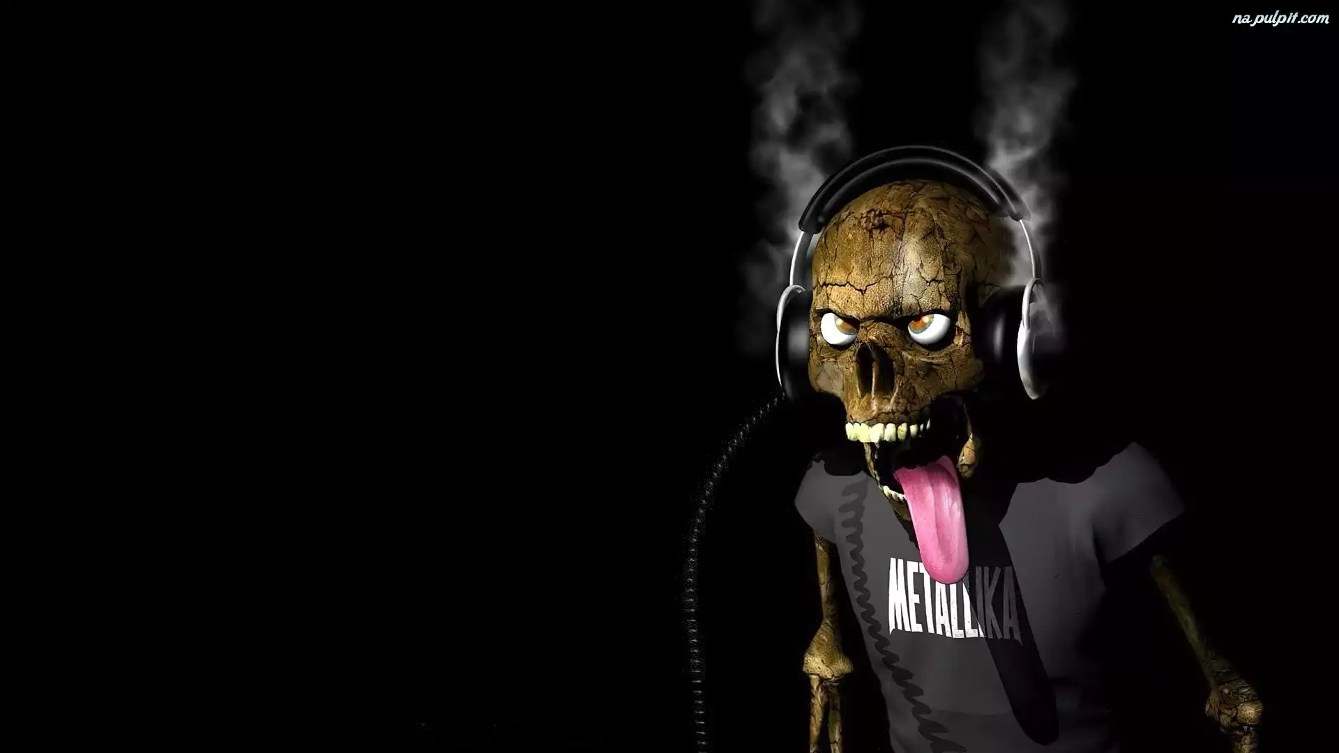 Oczy, Koszulka, Zęby, Język, Czaszka, Dym, Słuchawki