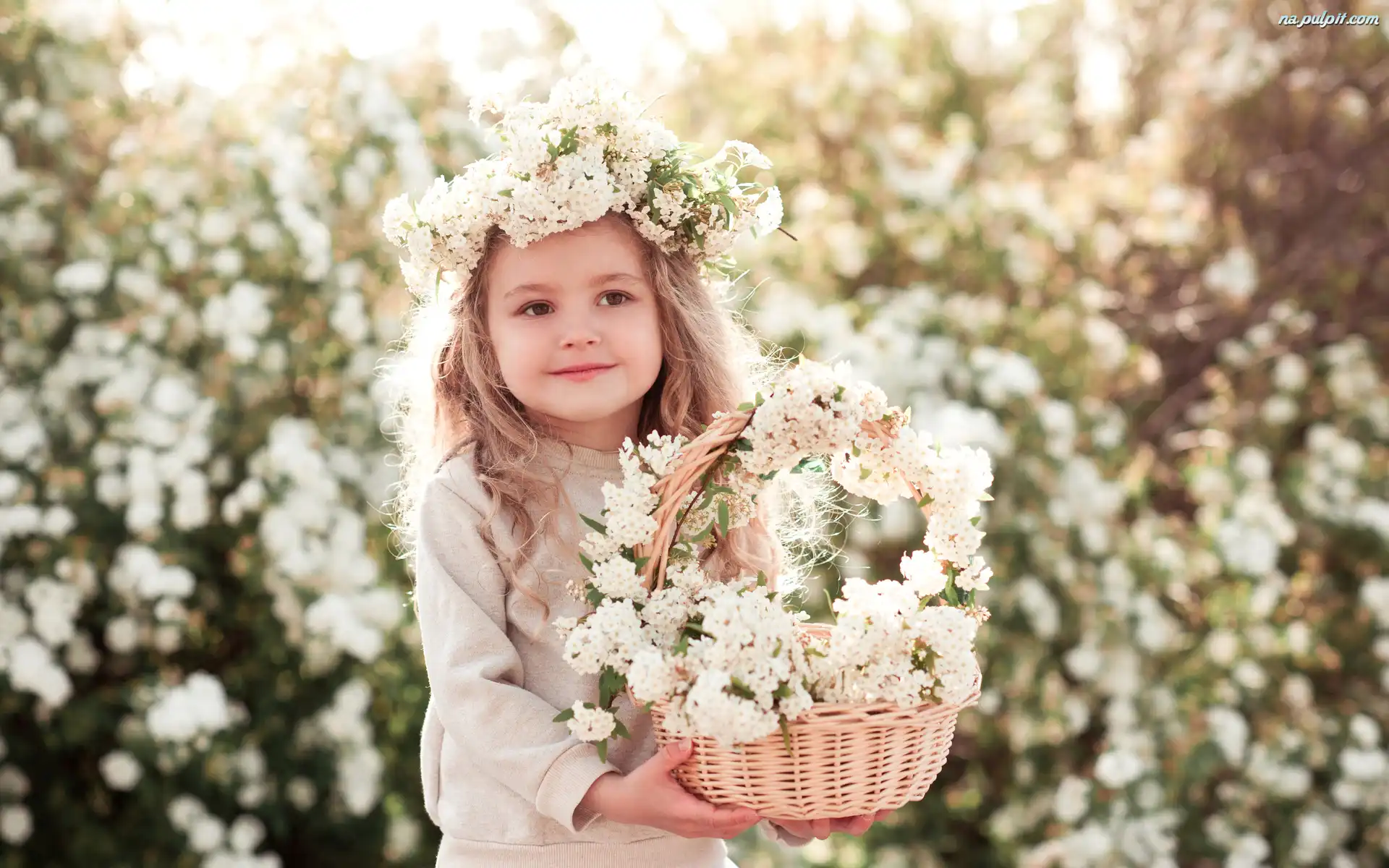 Koszyczek, Wianek, Dziewczynka, Kwiaty