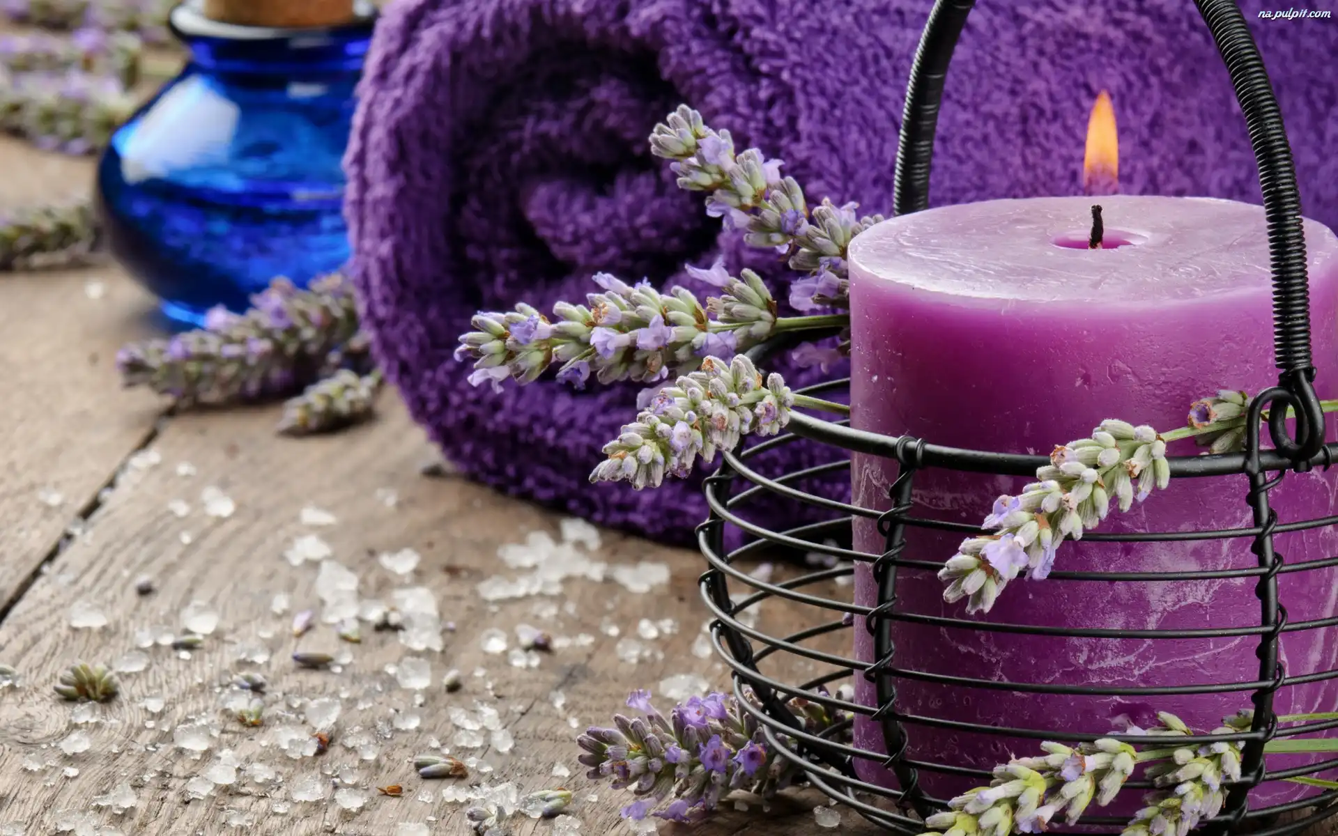 Koszyczek, Lawenda, Świeca, Ręcznik