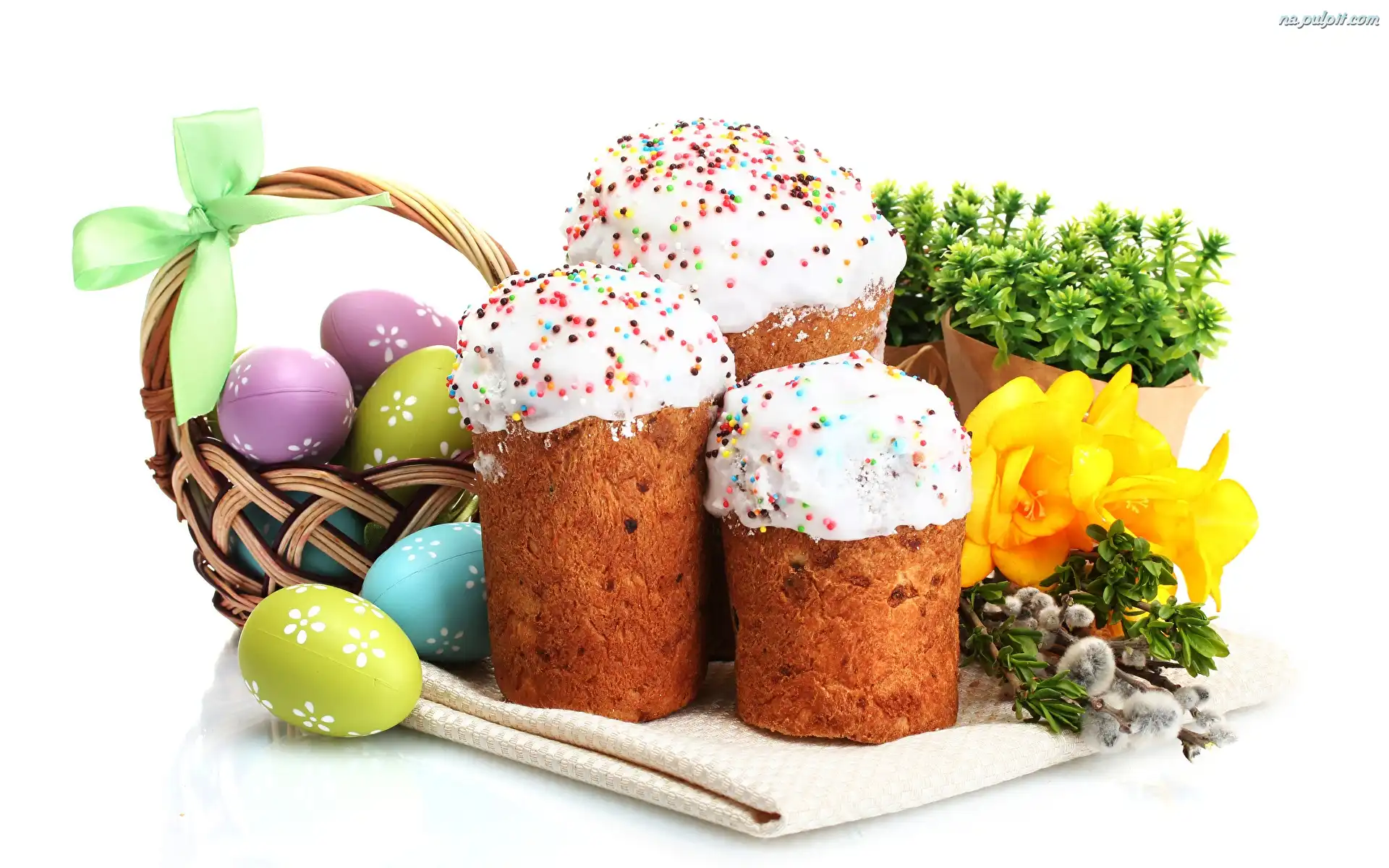 Koszyczek, Kwiatki, Bazie, Pisanki, Wielkanoc, Babki