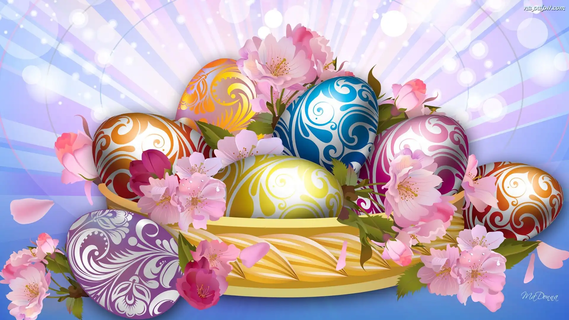 Koszyczek, Pisanki, Kolorowe, Wielkanoc, Kwiatki
