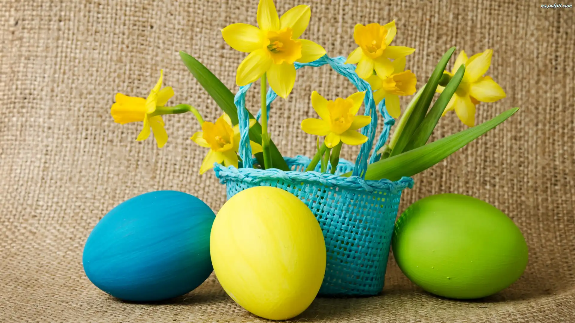 Koszyczek, Pisanki, Kompozycja, Narcyze, Wielkanoc, Żonkile Na Pulpit