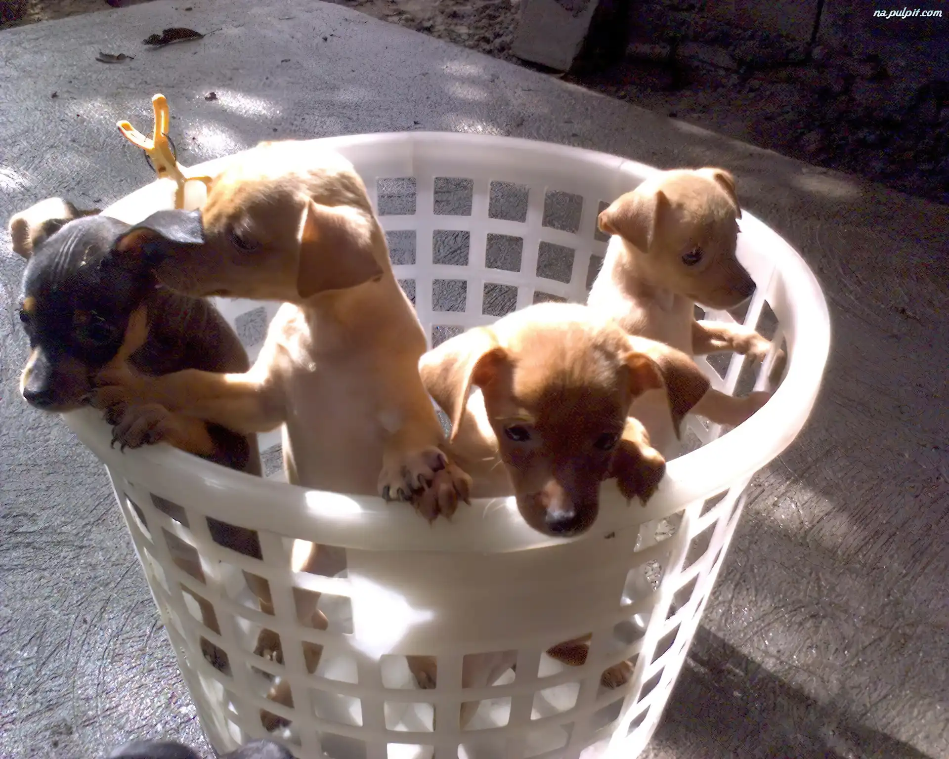koszyk, Pinczery miniaturowe, małe, cztery, biały Na Pulpit