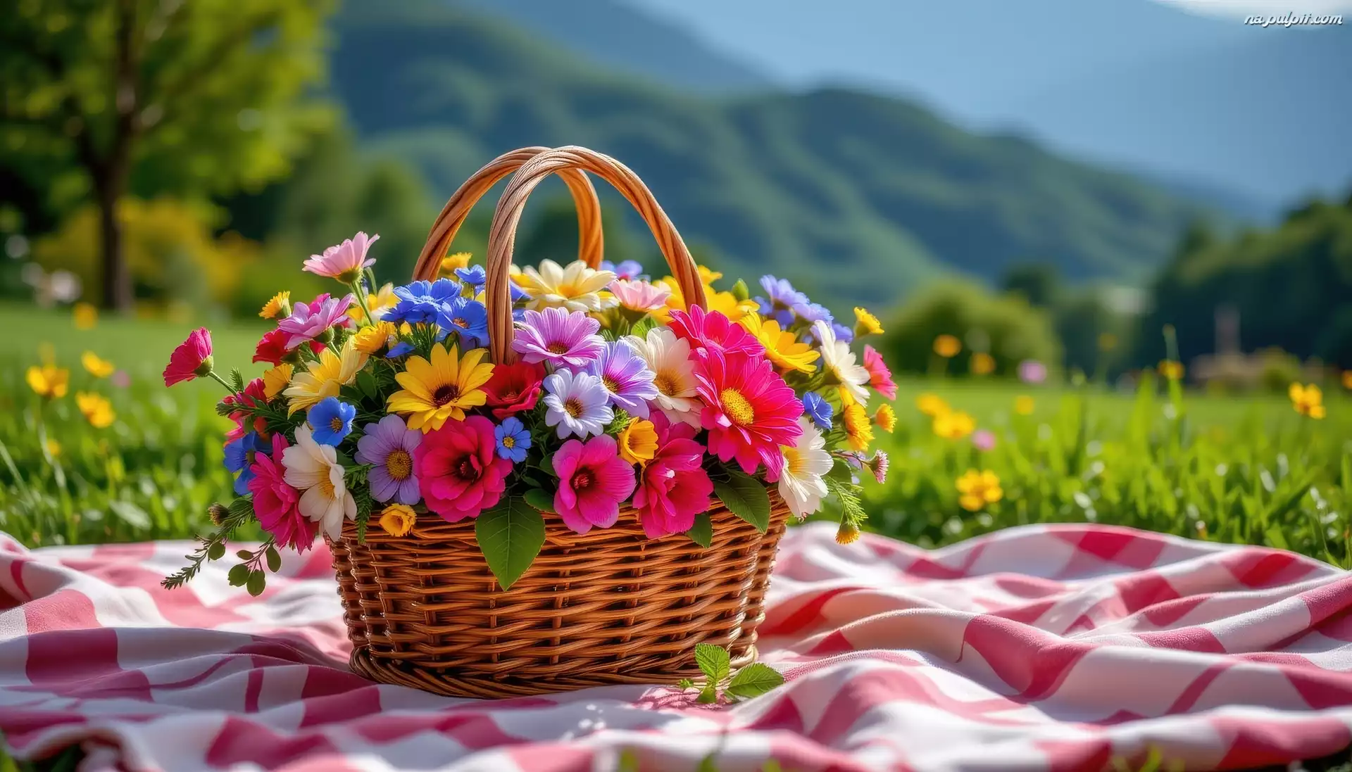 Koc, Kwiaty, Wiklinowy, Koszyk, Kolorowe, Góry Na Pulpit