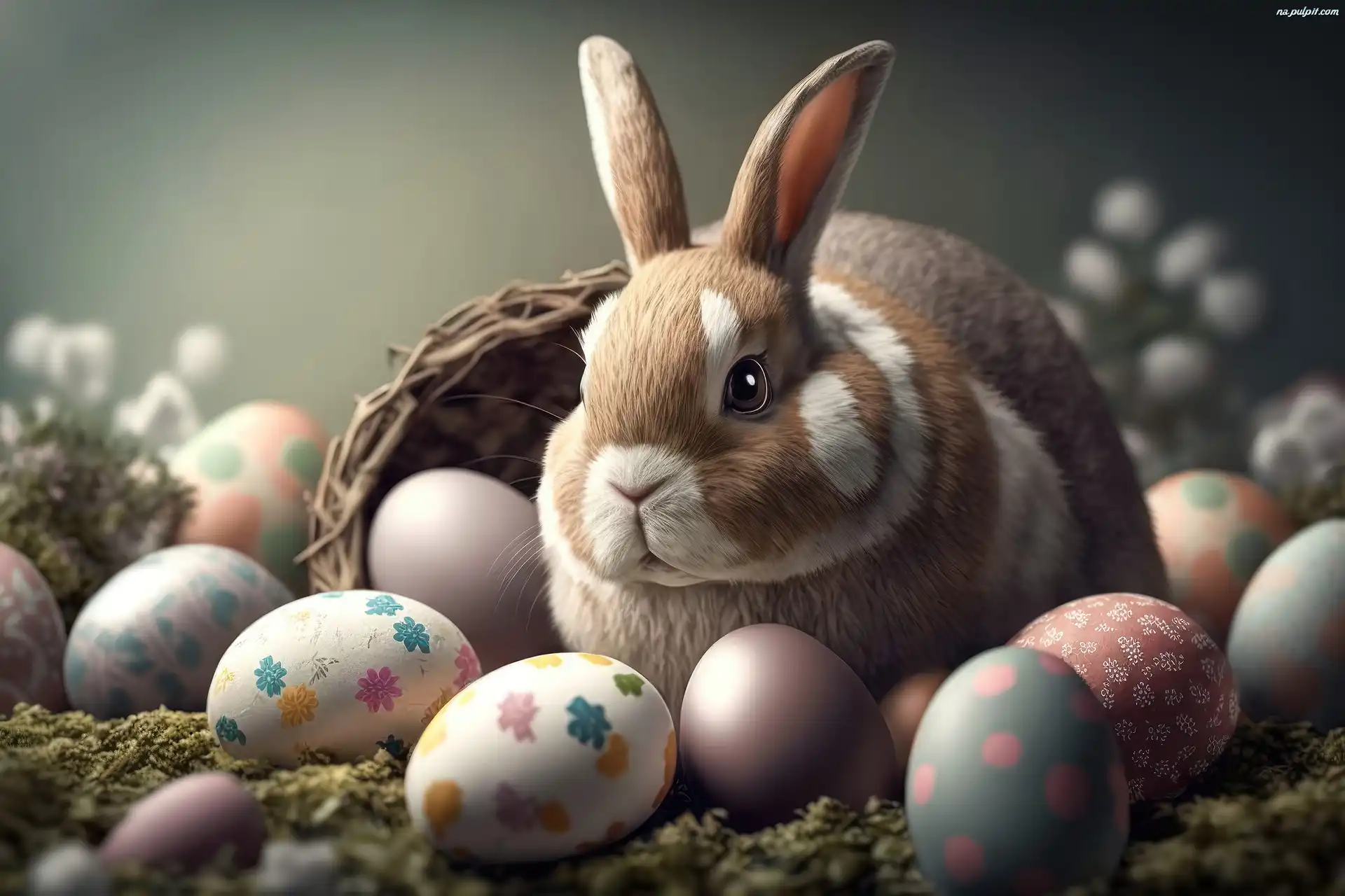Pisanki, Wielkanoc, Królik, Koszyk, Święta, Grafika Na Pulpit