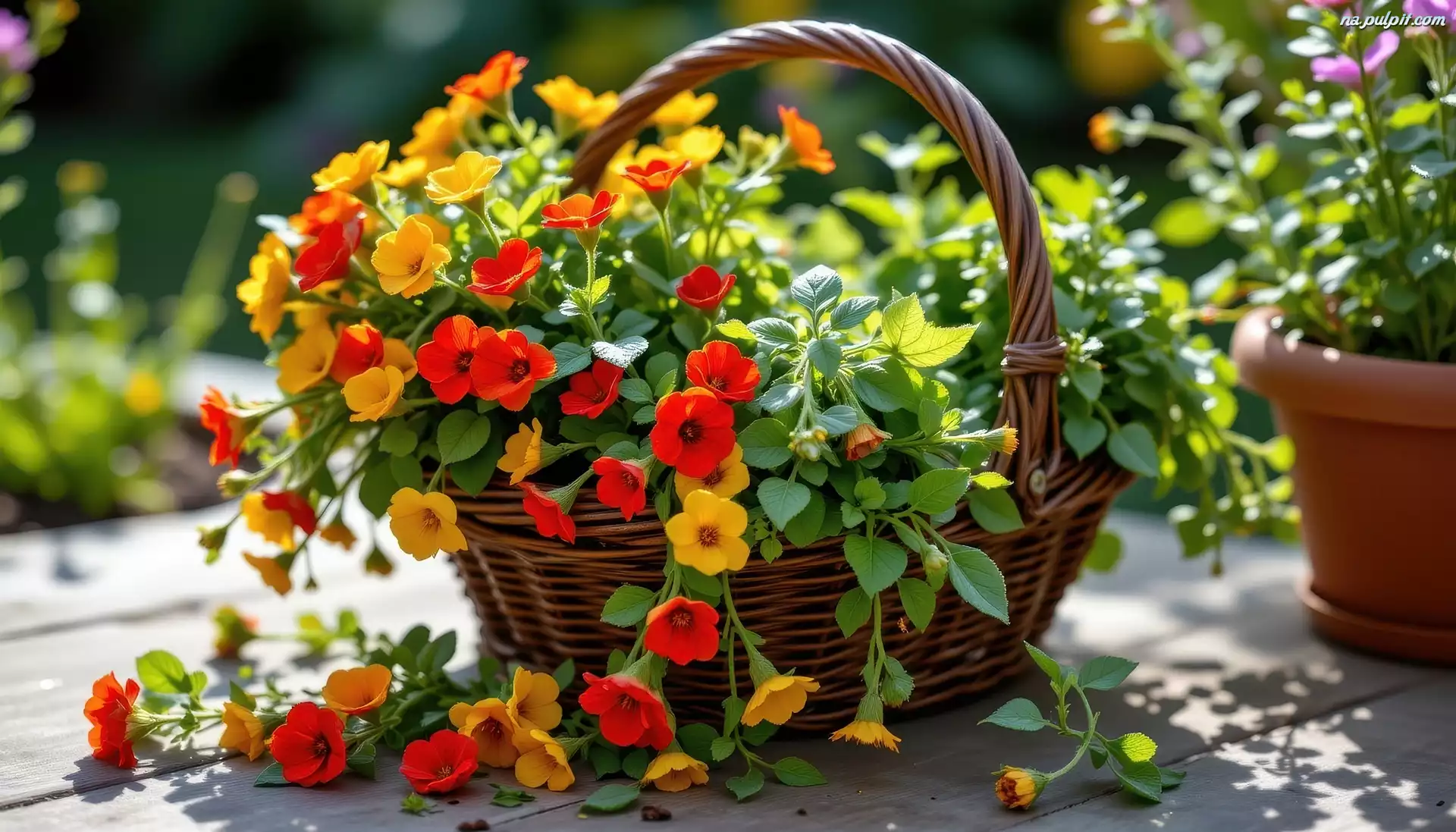 Kwiaty, Koszyk, Grafika AI, Nasturcje