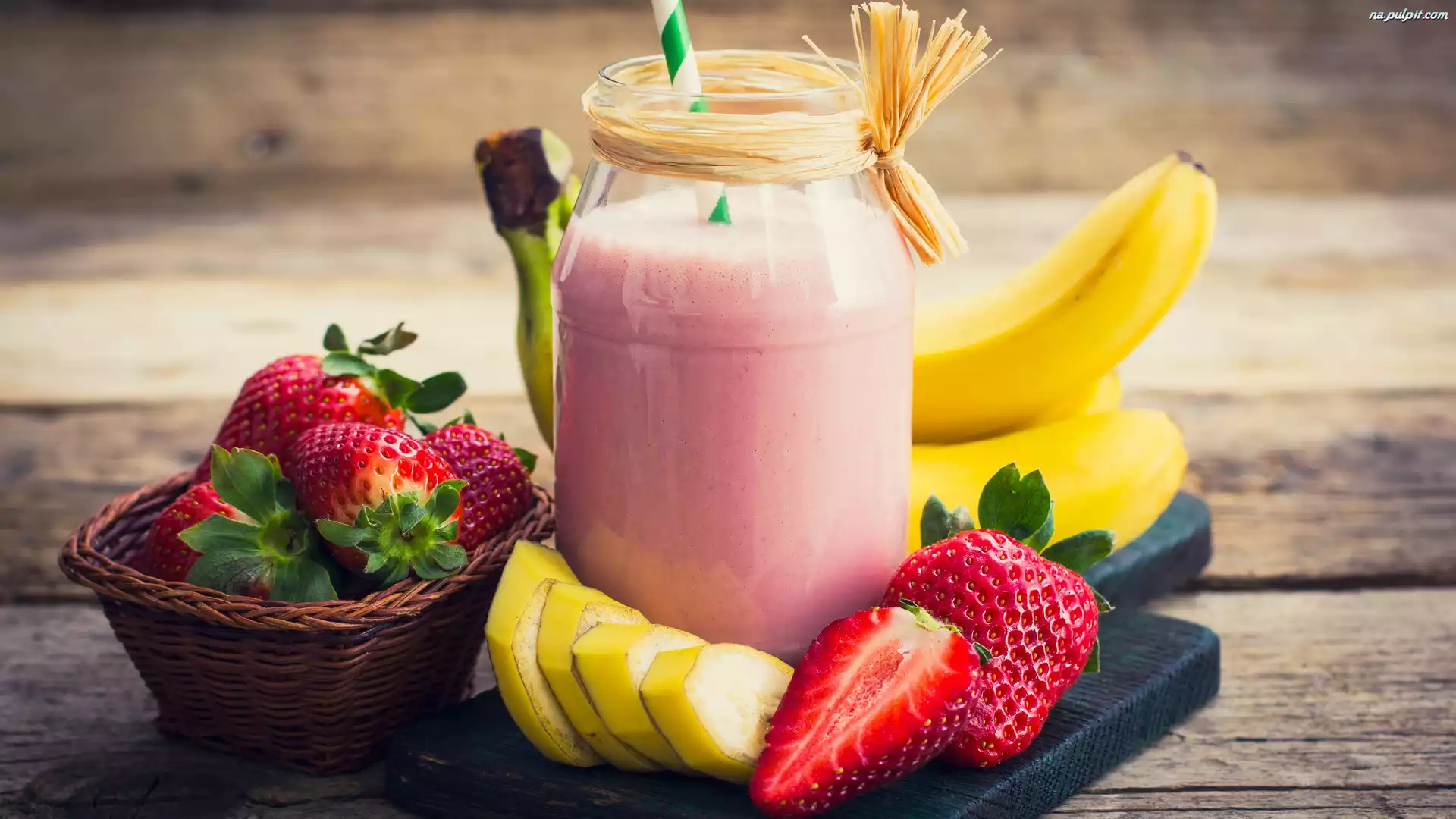 Koszyk, Truskawki, Banany, Koktajl, Kawałki Na Pulpit