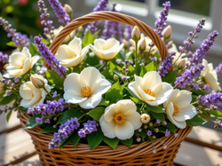 Kwiaty, Kremowe, Fioletowe, Koszyk