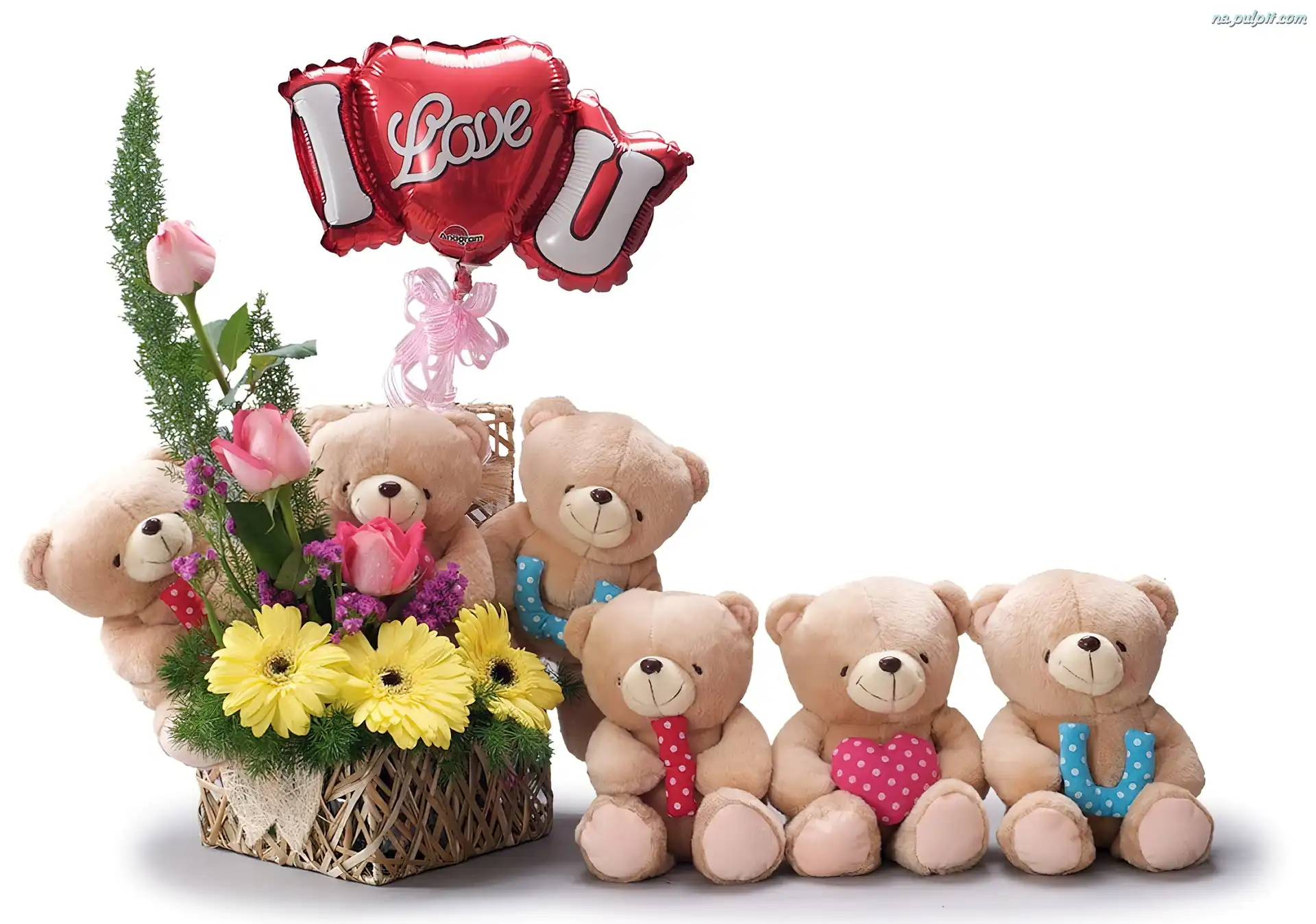 Koszyk, Miłosne, Wyznanie, Misiaczki, Kwiaty