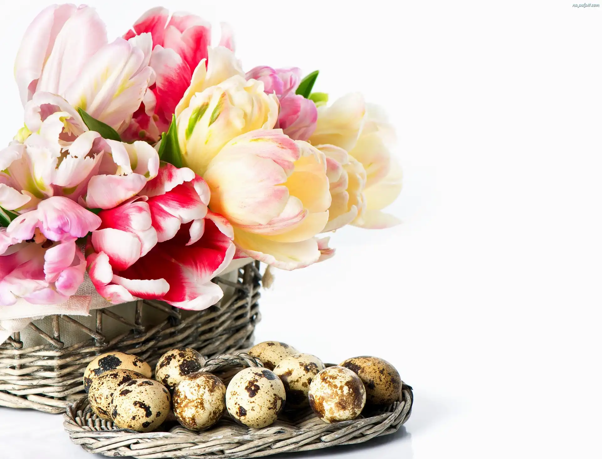 Koszyk, Jajka, Przepiórcze, Tulipany