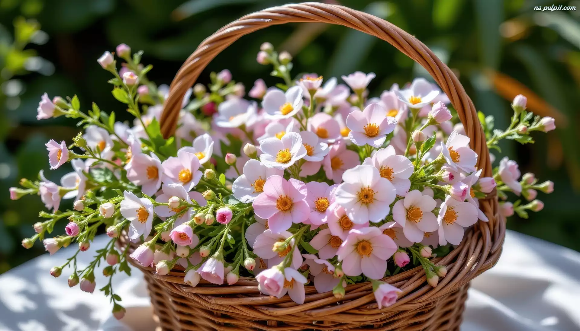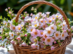 Różowe, Drobne, Kwiaty, Koszyk