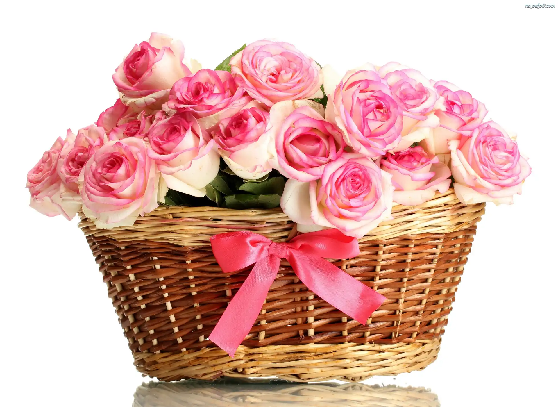 Koszyk, Róże, Różowe, Wiklinowy