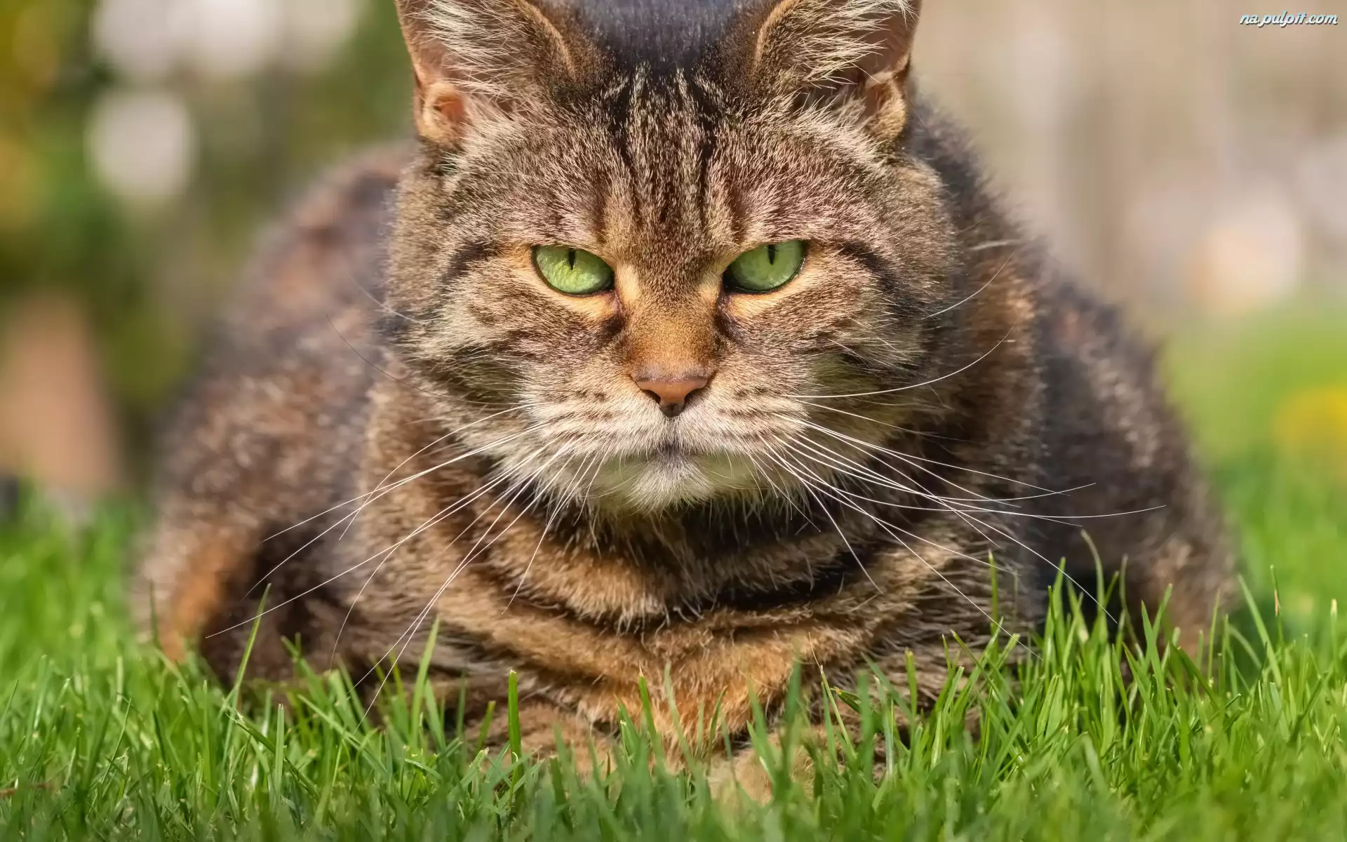 Oczy, Kot, Bury, Trawa, Zielone Na Pulpit