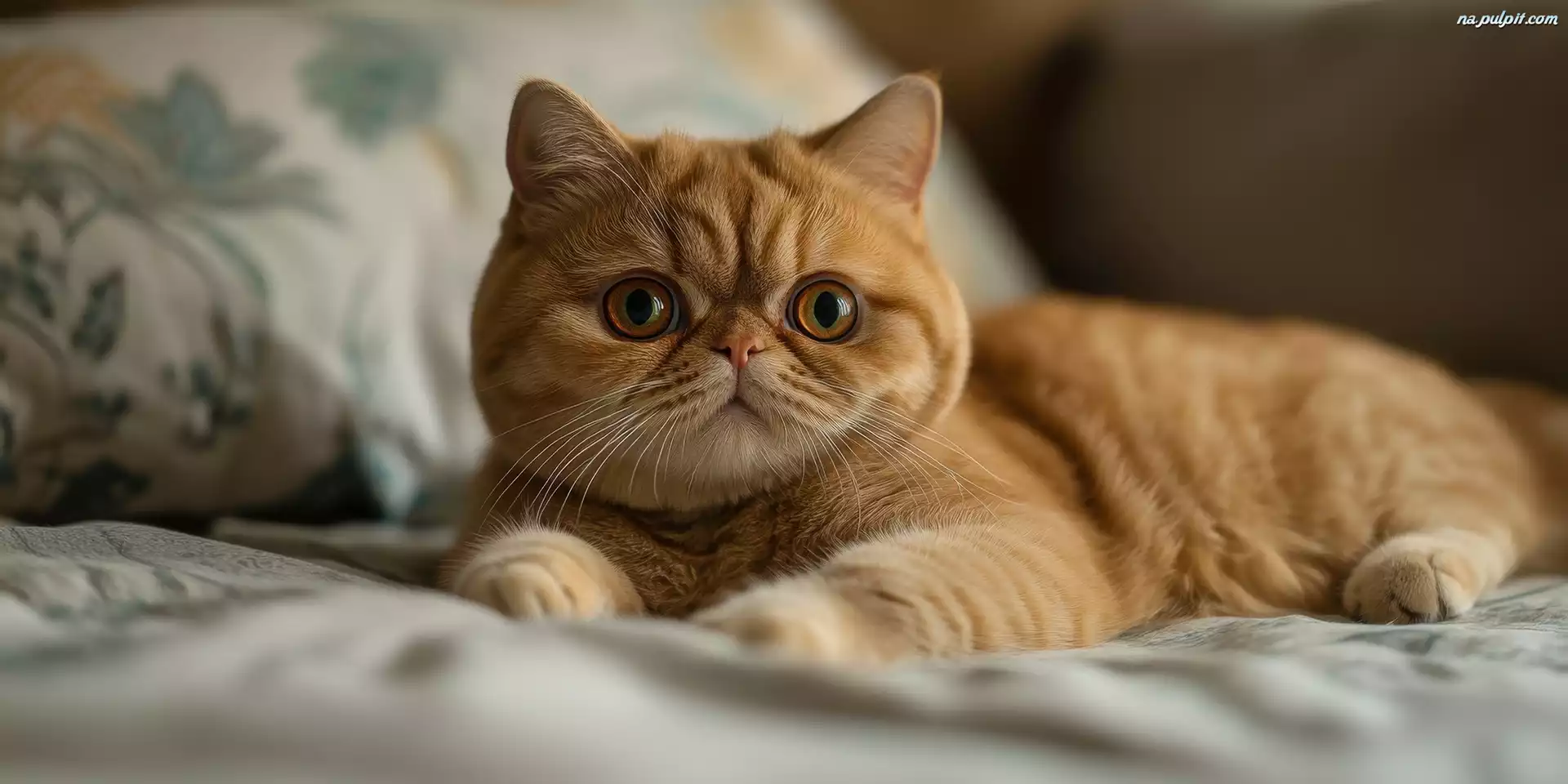 Poduszki, Rudo-biały, Kot egzotyczny Rudy, Kot egzotyczny, Łóżko, Grafika