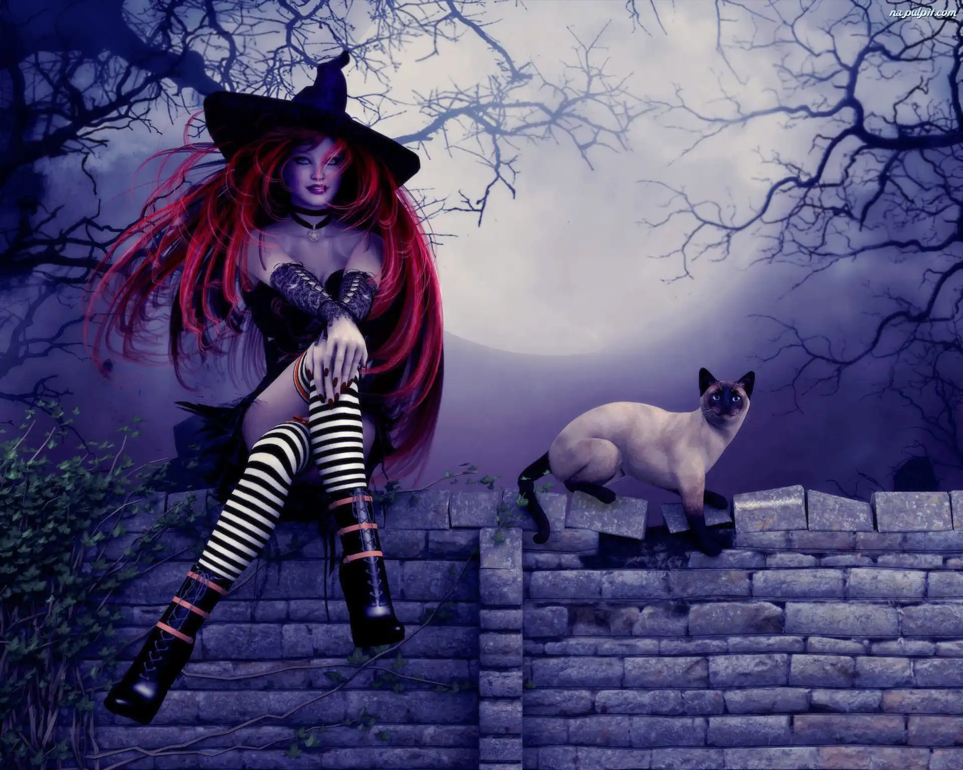 Kot, Kobieta, Halloween, Czarownica Na Pulpit