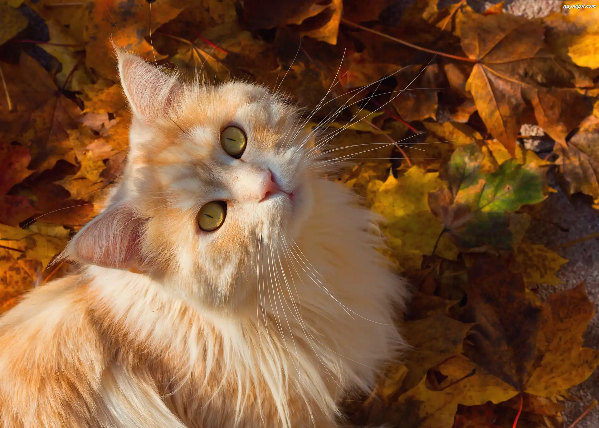 Kot, Jesienne, Liście, Miodowe, Jasnorudy, Oczy