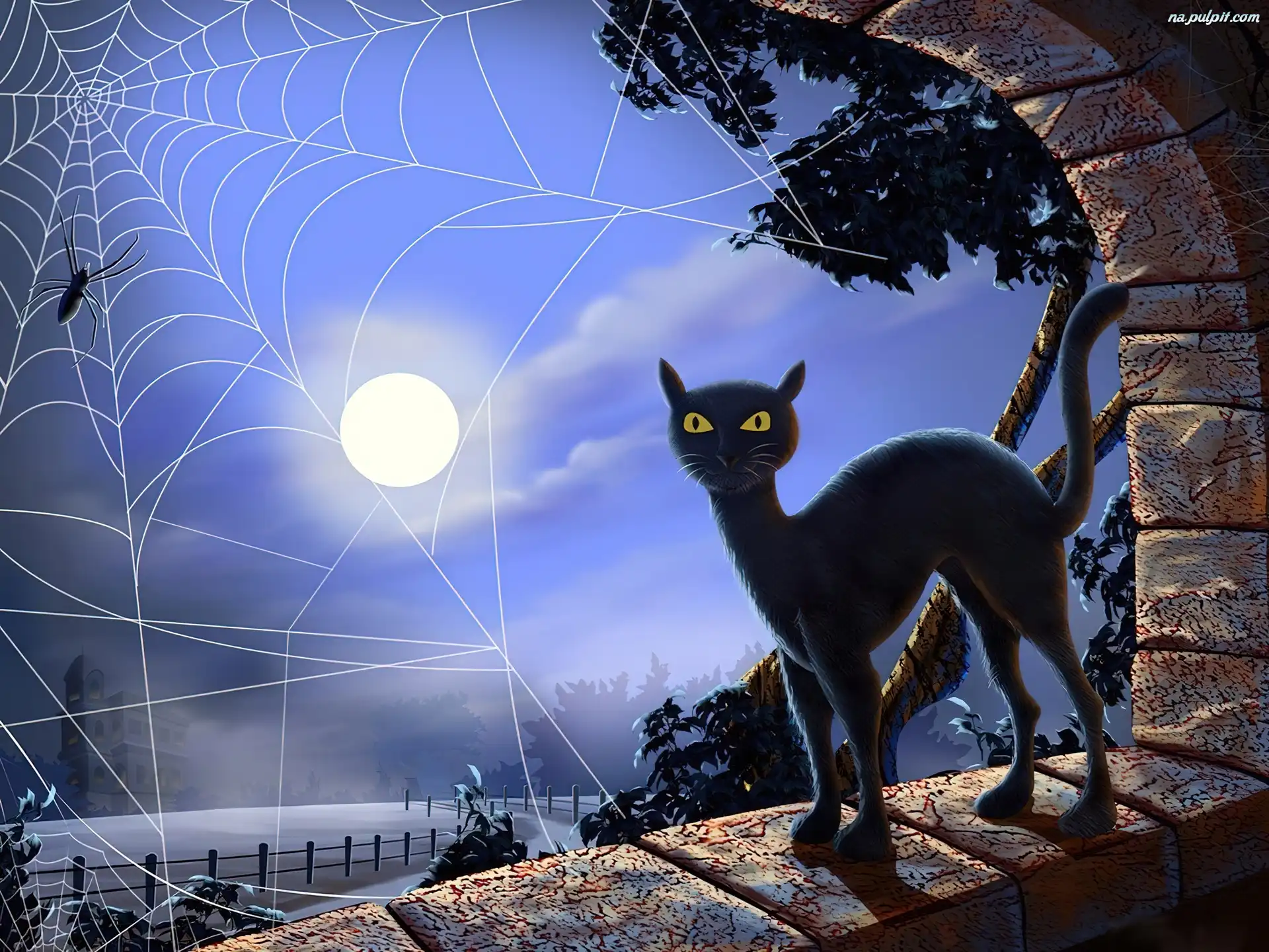 Księżyc, Kot, Noc Na Pulpit